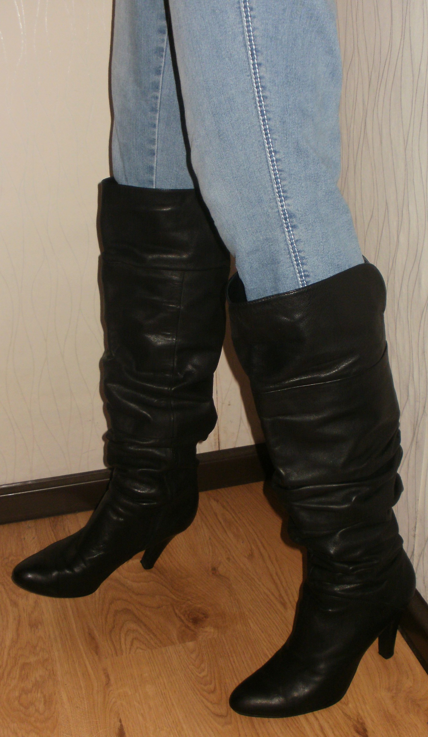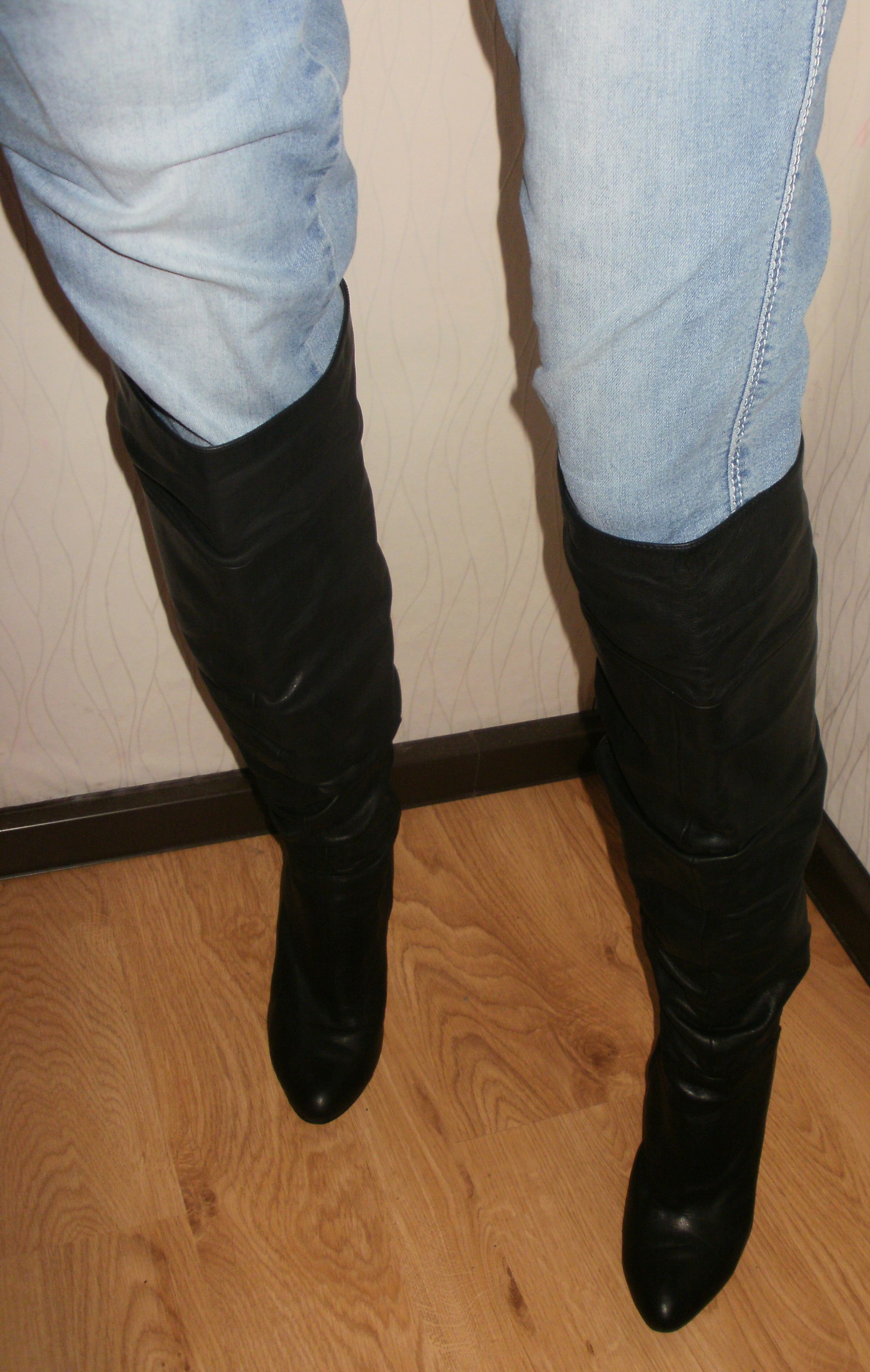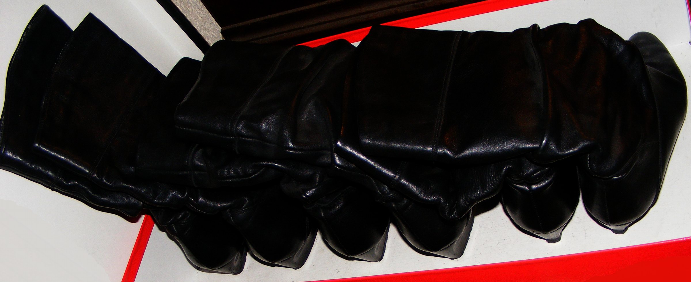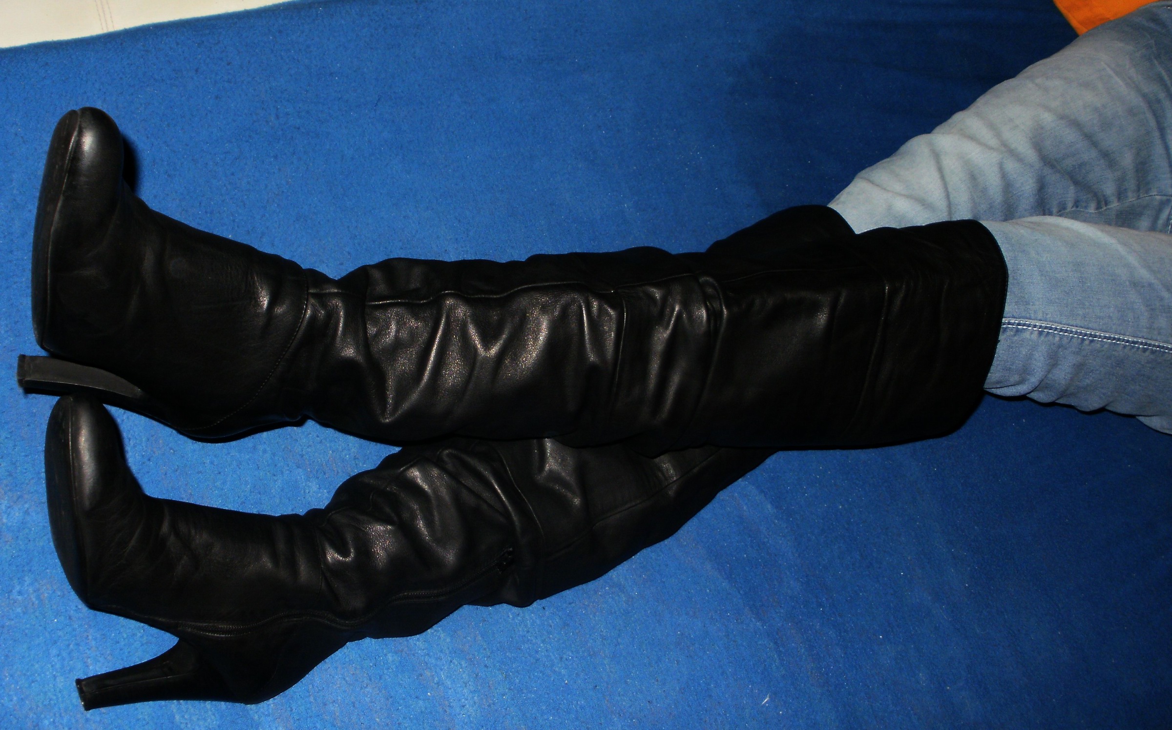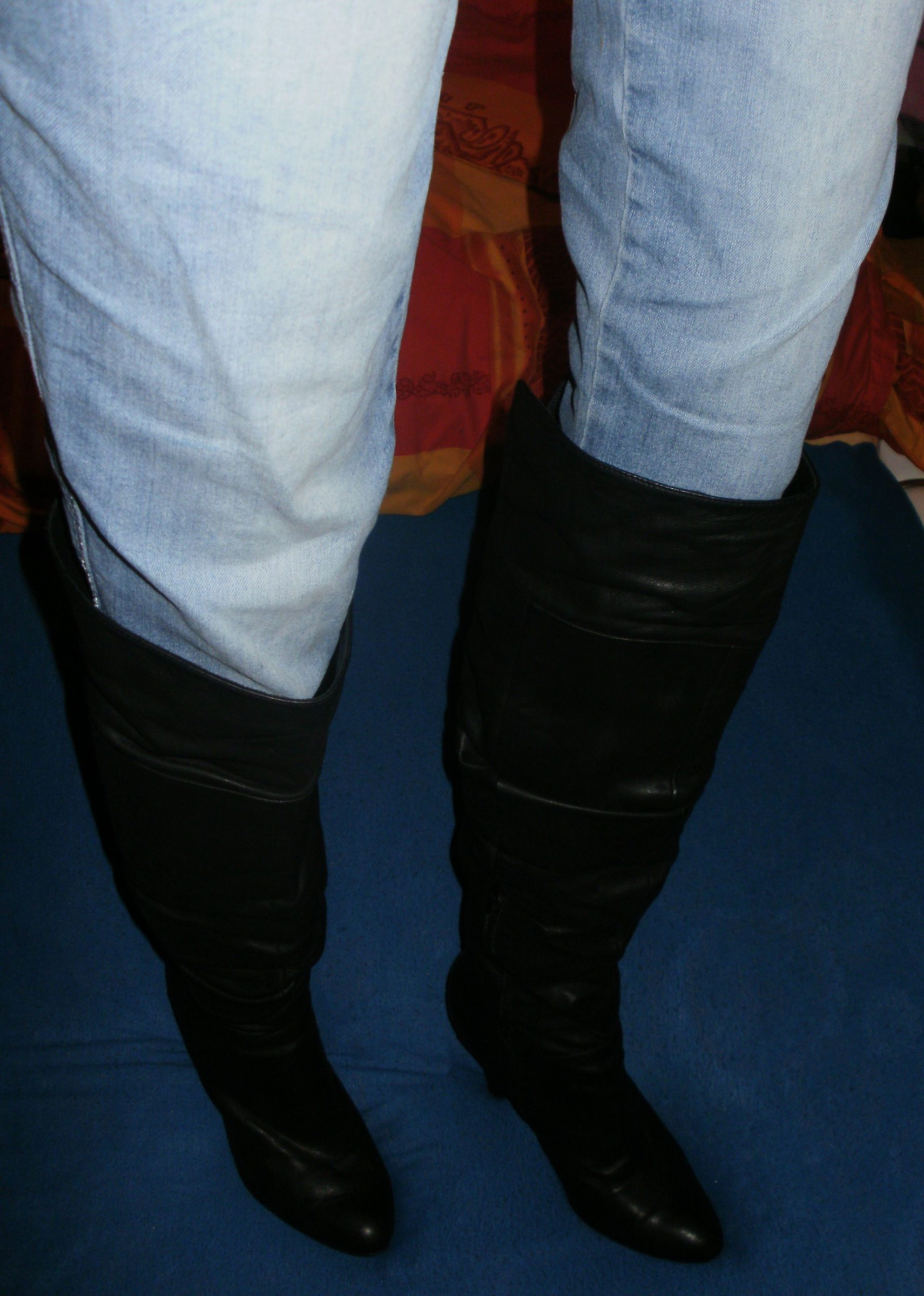 Die Stiefel, auf den Oben gezeigten Fotos, wo sie noch "vermüllt" und unaufgearbeitet gerollt im Badeofen liegen - die sind perkekt. Sehr weich und weit, kein Reißverschluß, lang bis wenigstens über die Kniescheibe (irgendwo hatte ich schon Tragefotos) und das 1 cm-Plateau optisch noch "verschmerzbar". :P