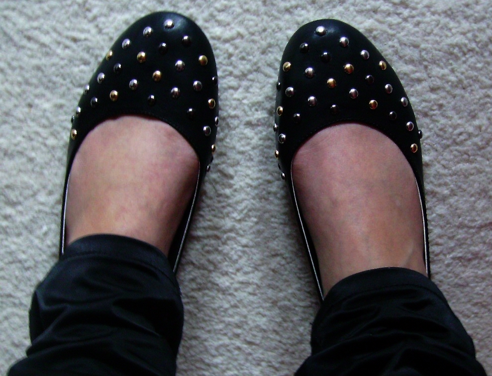 Selbstverständlich gibt es von Zara auch schöne Echtleder-Ballerinas mit Nieten, falls es der einsamen Hausfrau mal so ... und nur ihre Hausschuhe griffbereit zur "Verfügung" sind ... :lol: