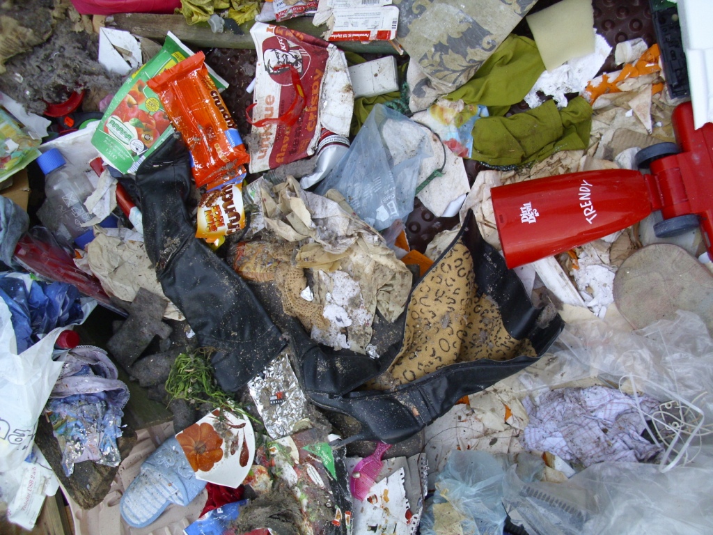 Da es am Tage zuvor geregnet hatte, war der Müll drunter noch feucht und so roch es auch! Alles klebte.