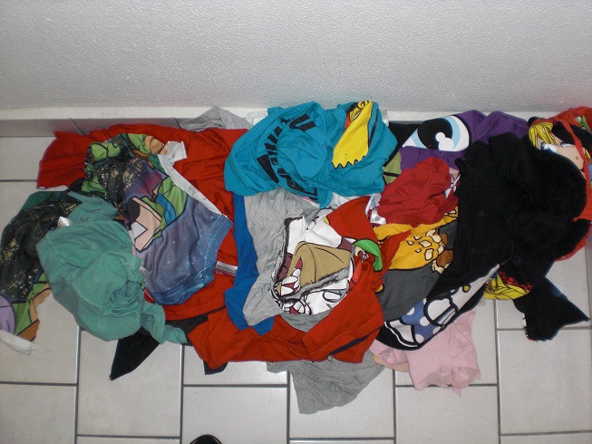 Und nur mal eine kleine Rechnung. Die Shirts sind zu 80% neu und ungetragen. Die meisten kommen aus Amerika und kosten mit Versand an die 30€ das Stück.