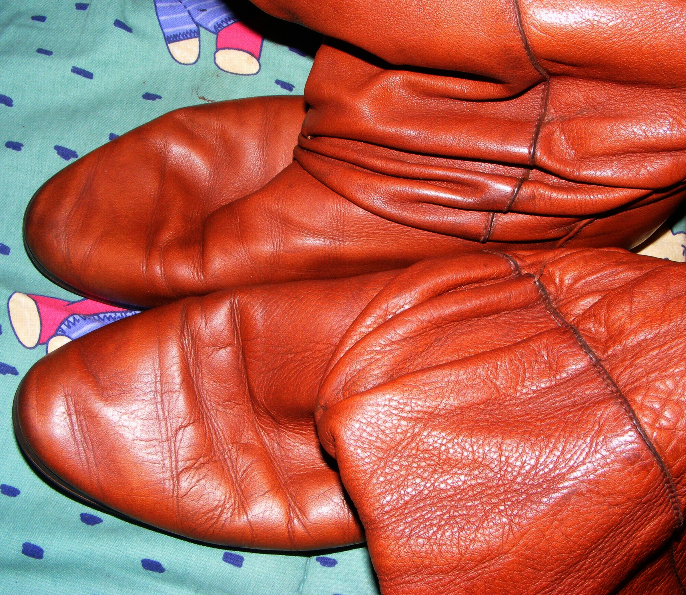 OMG: Was haben die Stiefel vor 25...30 Jahren Alles gesehen und erlebt? Wie oft standen sie getragen vor dem Herd oder knieten vor dem Badeofen, verstaubt mit der Asche ihrer "Geschwister"? Wie oft traten sie Plateaustiefel auf Ofengröße zusammen? Lagen sie selbst schon mal im Kohleneimer?