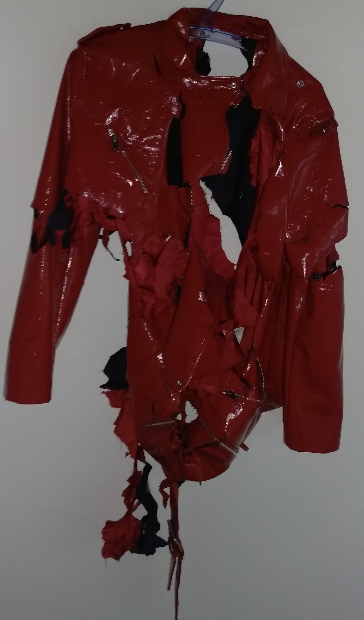 Ich bin mal reingeschlüpft. Ist eine 40. Zum Zumachen fehlen mindestens 20 cm aber man hätte sie richtig schön mittels spannen über dem Rücken zerreissen können. Habe noch ein paar diverse Jacken aus Lack und Kundtleder. Muss das mit dem Spannen einmal ausprobieren !