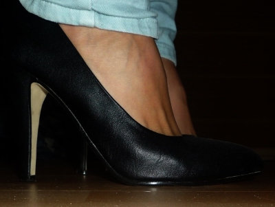 Es ist einer der wenigen Samstage im Jahr, an denen ich arbeiten muß. Ines rief mich an, ihr Schrank im Büro müsste verrückt werden, ob ich ihr helfen kann. Klar doch, für dich immer! Ich kam in ihr Büro, sie zeigte mir den Schrank, ich sagte ok, sie sagte, sie wäre in 10 Minuten zurück und stöckelte in ihren hochhackigen, schwarzen Wildlederstiefeln davon. Ich öffnete den Schrank, vor mir einige Schuhkartons. Beim öffnen des ersten Kartons entdeckte ich ihre schwarzen Büro-Pumps, komplettleder, 10-cm-Metallabsatz, scheinbar noch aus den 80ern, weil das Leder wirklich sehr weich war, was es heute nichtmehr gibt...