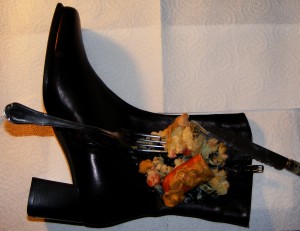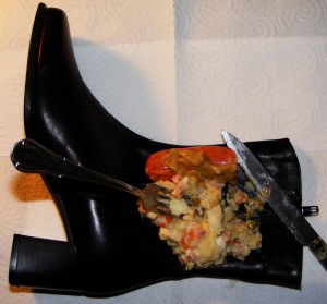 Ich hoffe doch sehr, daß bei der Schuhparty wieder etwas Schönes für mich dabei ist und wir die Welt um einiges Schreckliches erleichtern können. Wirklich gern im Feuer gesehen: Fake-Stiefel und Supis!