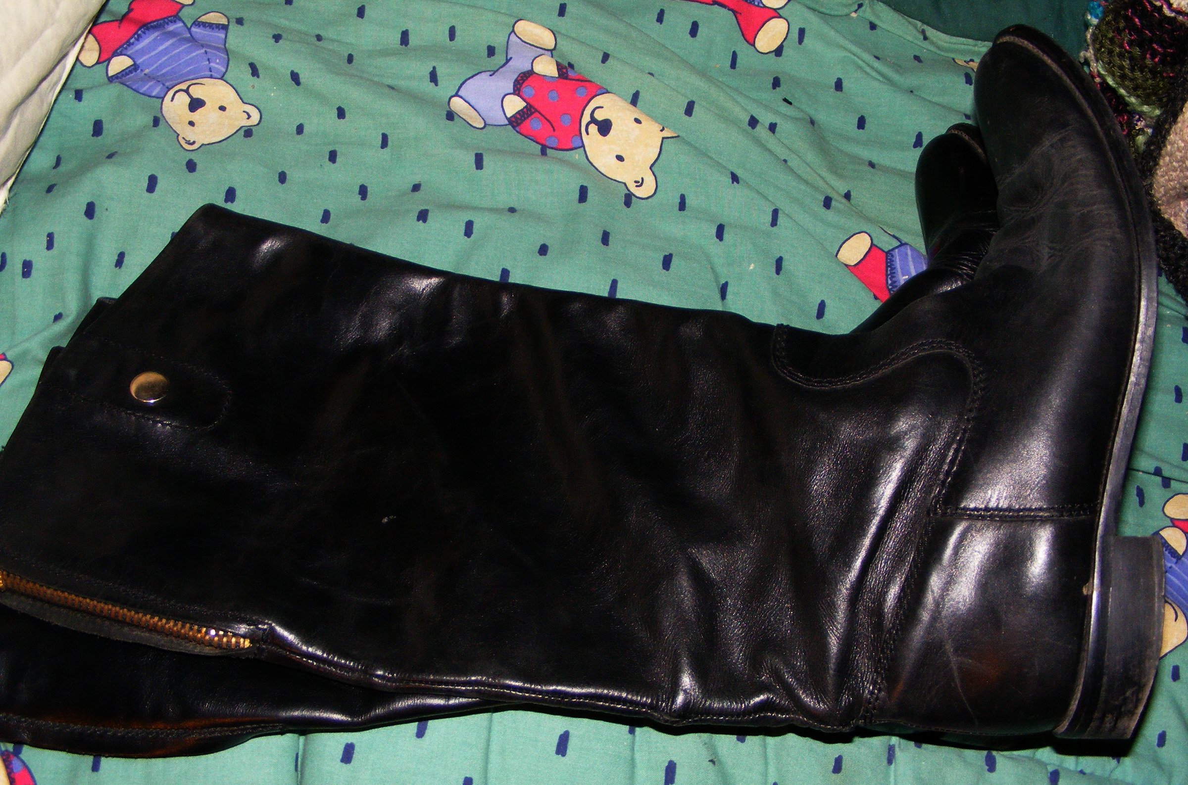 Das letzte Bild von deine Stiefeln in deinem Beitrag hab ich heute gesehen. Aber in Braun, flache Overknees ohne Absatz und auch schon ganz benutzt. Müsste sich schon um ältere handeln da ich das Modell selten sehe und schon die Sohle repariert wurde.