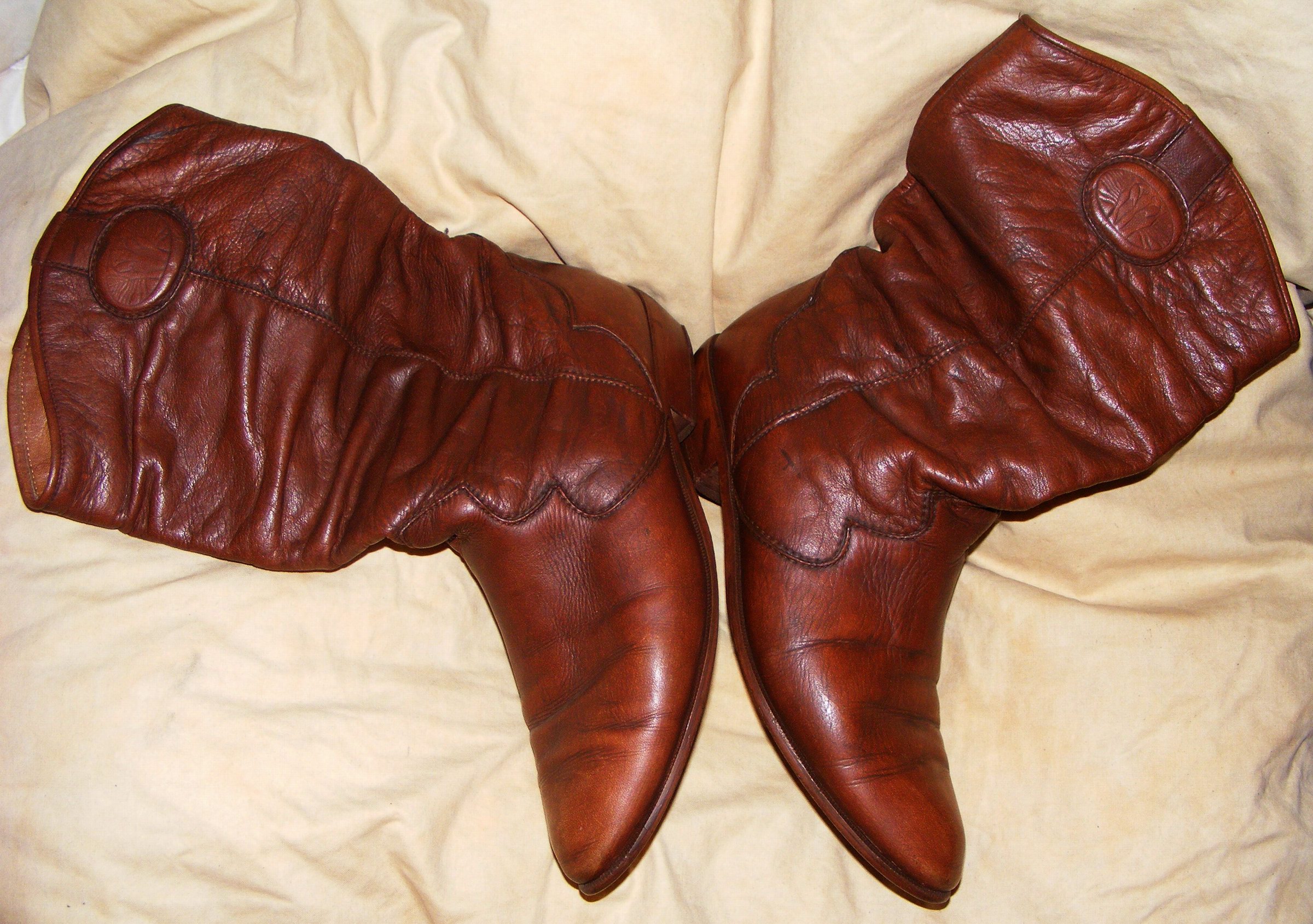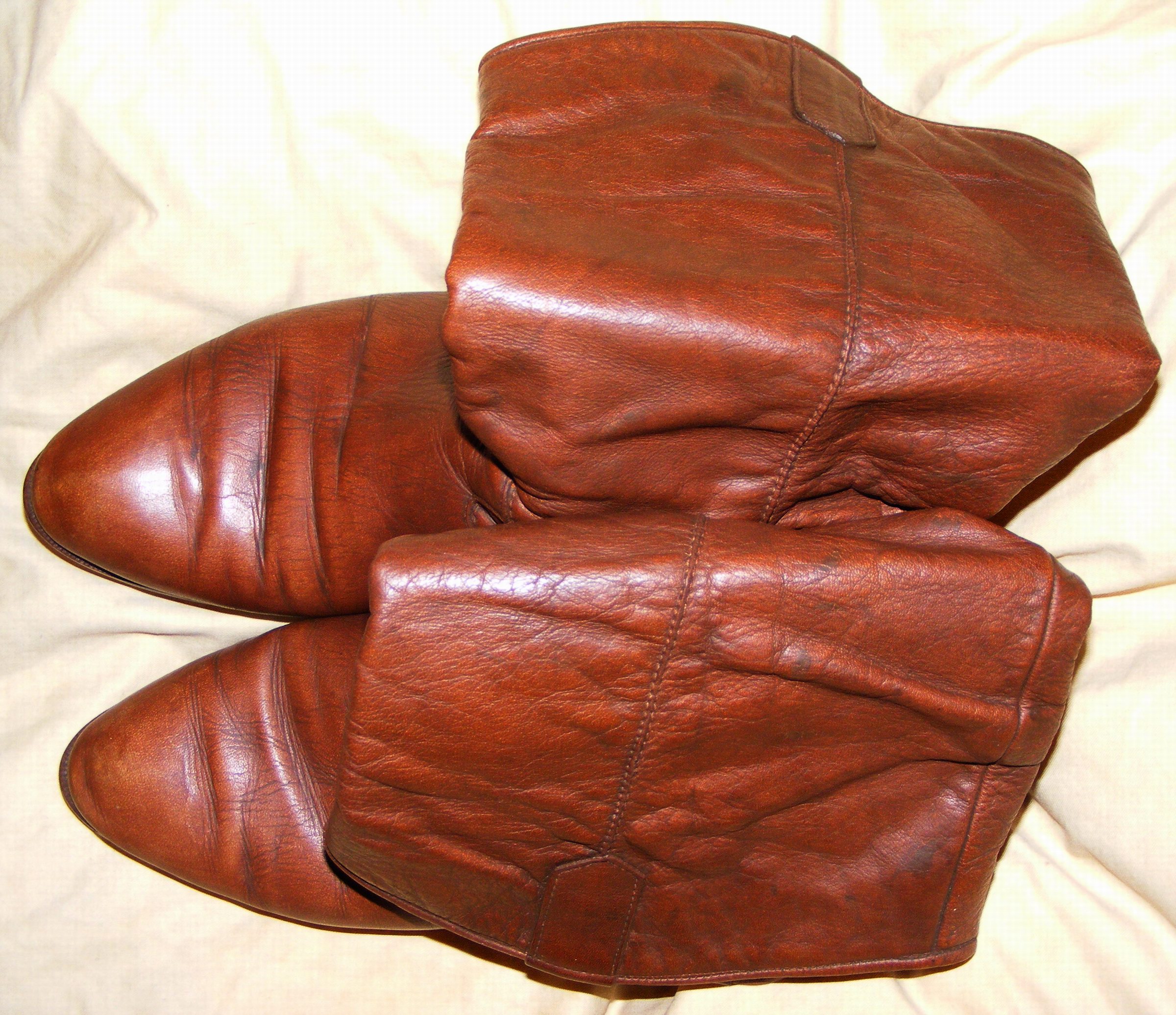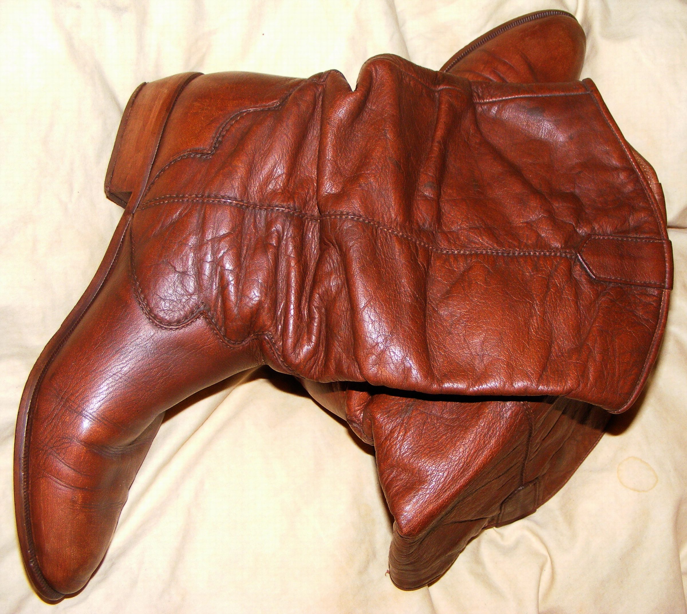 Selbstverständlich ist die Lederhose geil - doch ich glaube, die Farbschattierungen des faltigen Leders dieser wundervollen braunen Stiefel zeigen noch deutlicher und erregender die Vorzüge dieses herrlichen Materials.