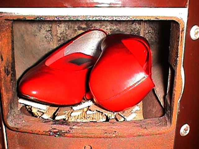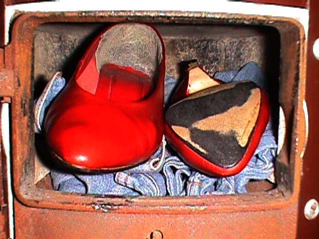 War das oftmals futterlose weiche Leder zusätzlich mit Schuhkreme durchtränkt, brauchten die Schuhe auf Holz- oder Kohlenglut nur wenige Sekunden, bis sie wie ein Taschenmesser Zusammenklappten und laut fauchend ihr Federeisen und das kurze Absatzsteckröhrchen Freigaben! :twisted:
