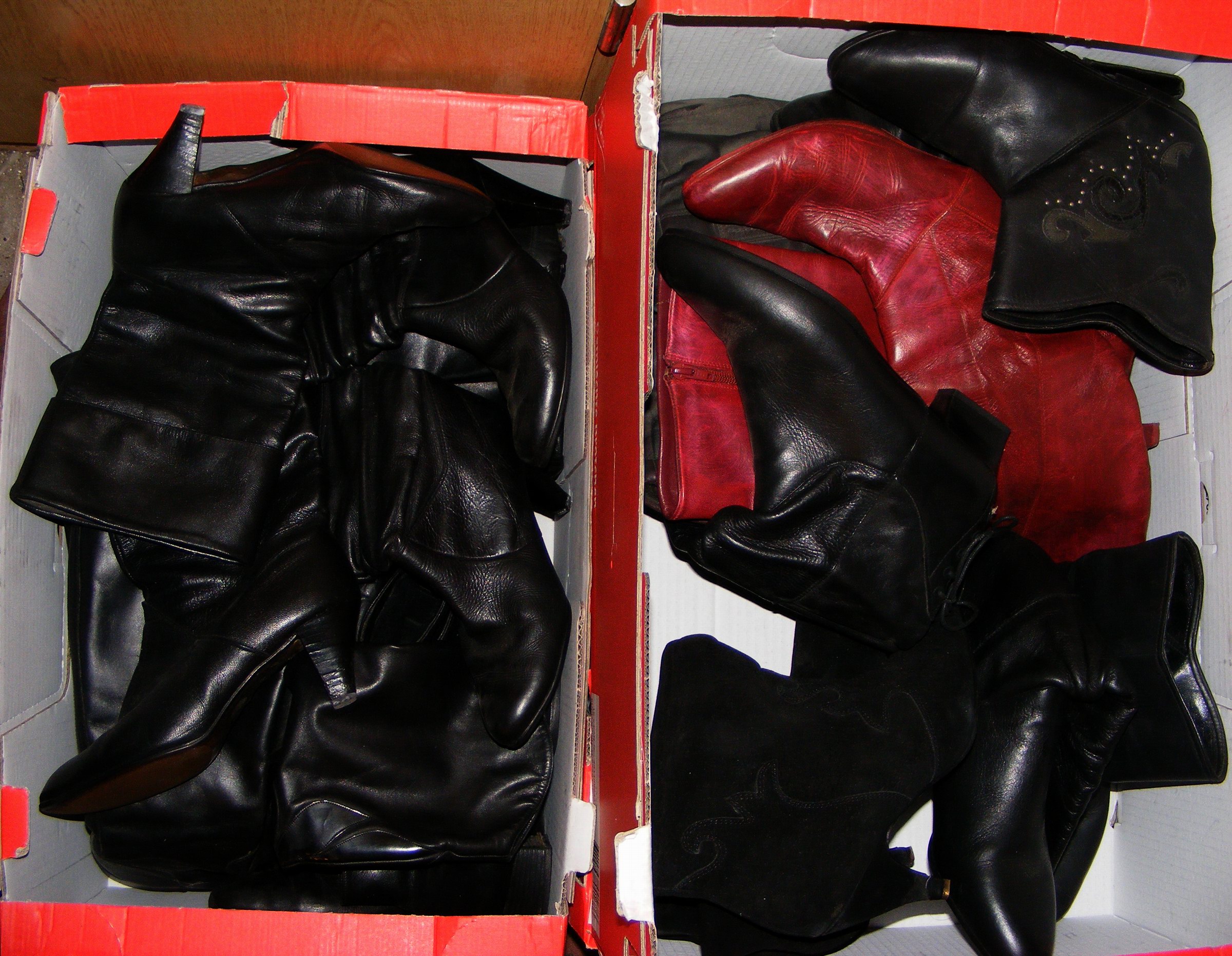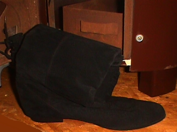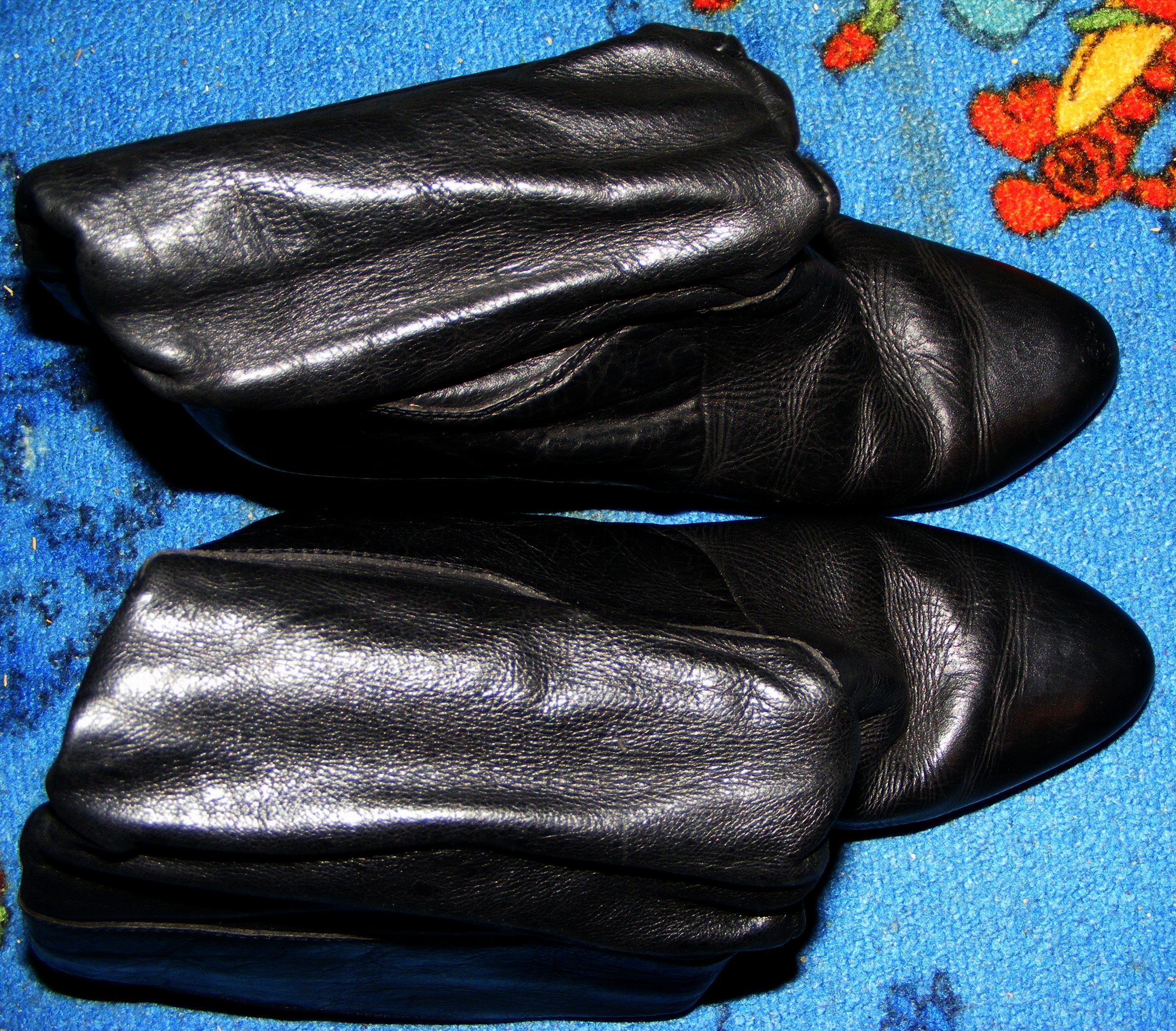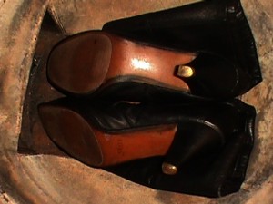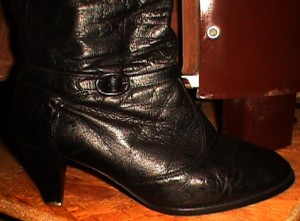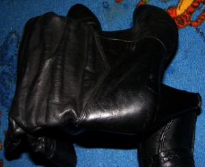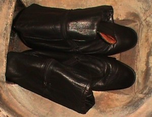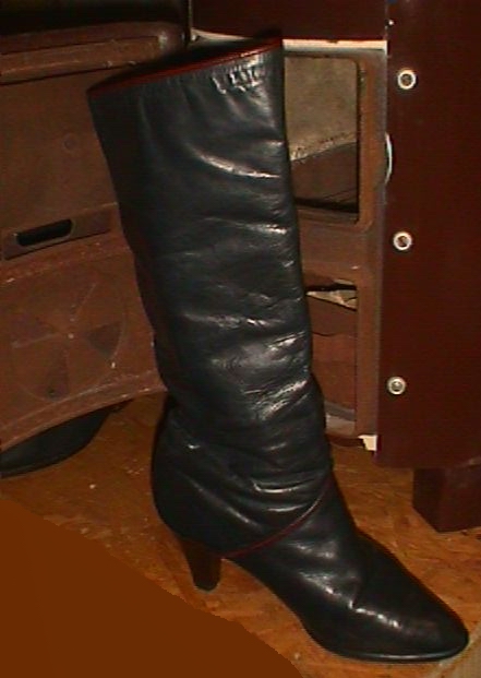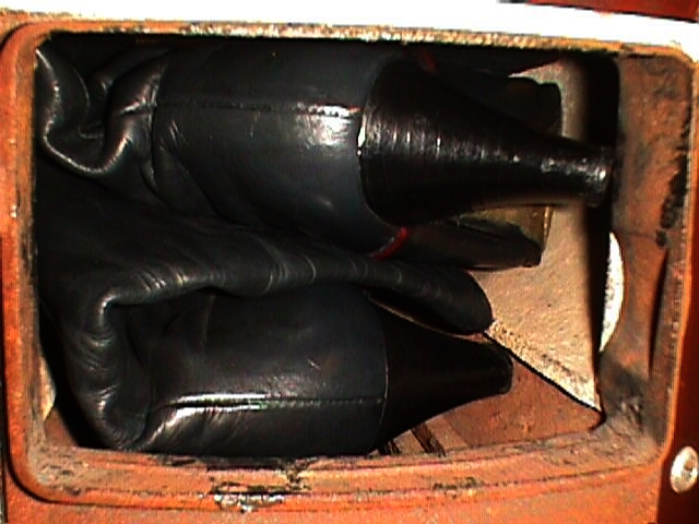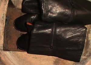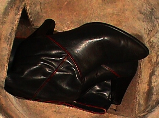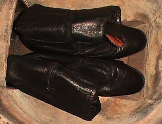 Und, für alle Anderen: Die versprochenen Leder-Stiefelchen von der Müllkippe (gefunden 1996)!