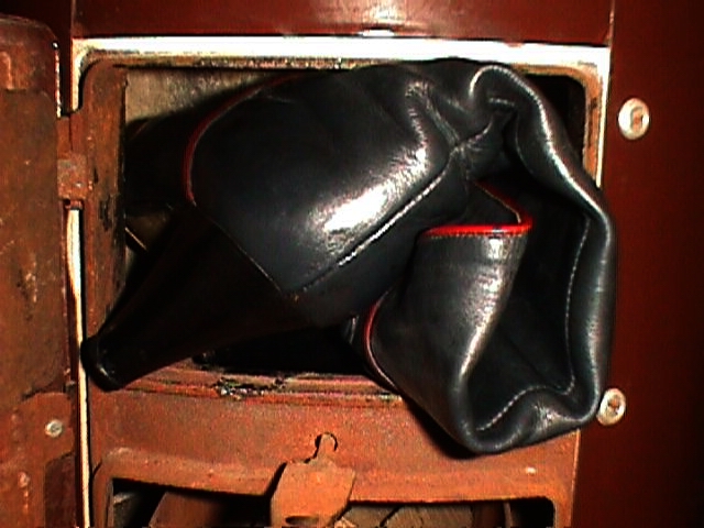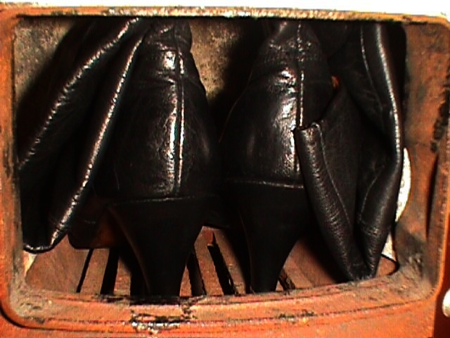Wahrlich hatte ich immer ausreichend "Nachschub", sodaß wirklich ständig Schuhe/Stiefel griffbereit waren. Das war auch der Tatsache geschuldet, daß ich eben (Sperr-)Müllfunde von Schuhen immer säcke- bzw. kistenweise komplett mitnahm, um zu Hause in Ruhe Anzuprobieren und zu Entscheiden, was eben direkt am Fundort "auf der Straße" kaum möglich ist. Natürlich wäre ich dann "dumm" gewesen, wenn ich die Unbrauchbaren wieder zurück auf den Müll gebracht hätte - unabhängig aller fetischistischen Gefühle und Neigungen - nichts Vergleichbares brennt besser und intensiver als Lederschuhe, sie sind das pefekteste Heizmaterial für Herde und Badeöfen, haben bereits die ideale Größe, sauberer zu Lagern als Kohle, dazu praktisch noch kostenlos und bilden weniger Asche!