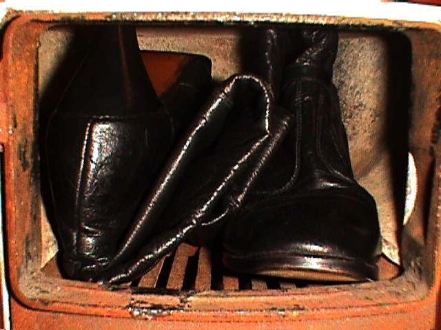 Die schuhe und Stiefel sind schon mal zur feuerprobe im ofen probe gesessen