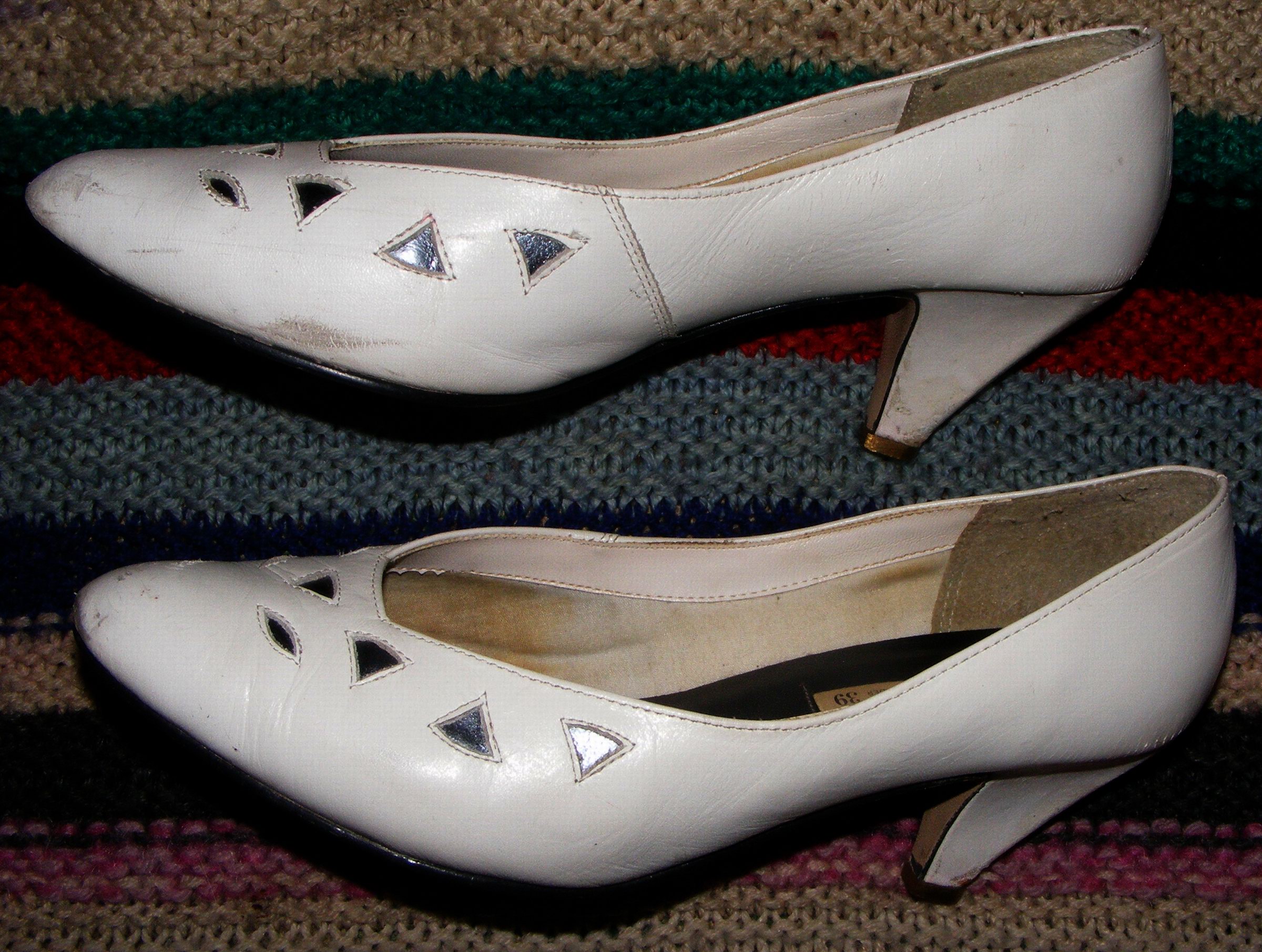 Dort prüfte ich die "Beute". Die Ballerinas waren ursprünglich Grau, bereits von ihrer Vorbesitzerin Schwarz gefärbt. Teilweise war die Farbe Abgegangen, doch ich färbte sie nach und trug die Schuhe mindestens noch ein ganzes Jahr lang. Die blauen Lackpumps hatten beschädigte Absatzbezüge, diese ließ ich beim Schuster Reparieren und auch neu Belegen. Diese Pumps hatte ich sogar einige Jahre im Bestand. Die Ledersneakers klebte ich selbst und trug sie noch am selben Abend, als ich leider die beiden einzelnen Spangenpumps Verbrennen mußte. Die Turnschuhe trug ich in der Schule ab, bis die Sohlen komplett Durchgelaufen waren und sie mir regelrecht "von den Füßen fielen". Die blau/grauen Stiefel hatten eine ausgerissene Schaftnaht, die ich reparierte. Auch diese Stiefel hatte ich noch mindestens zwei Jahre Getragen. Die grauen Mokassin-Pumps habe ich noch Heute - sie sind einfach zu schön!