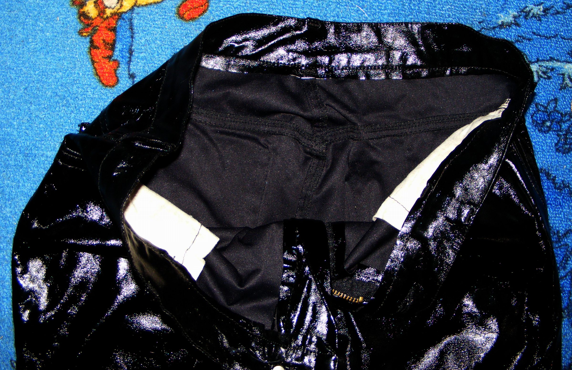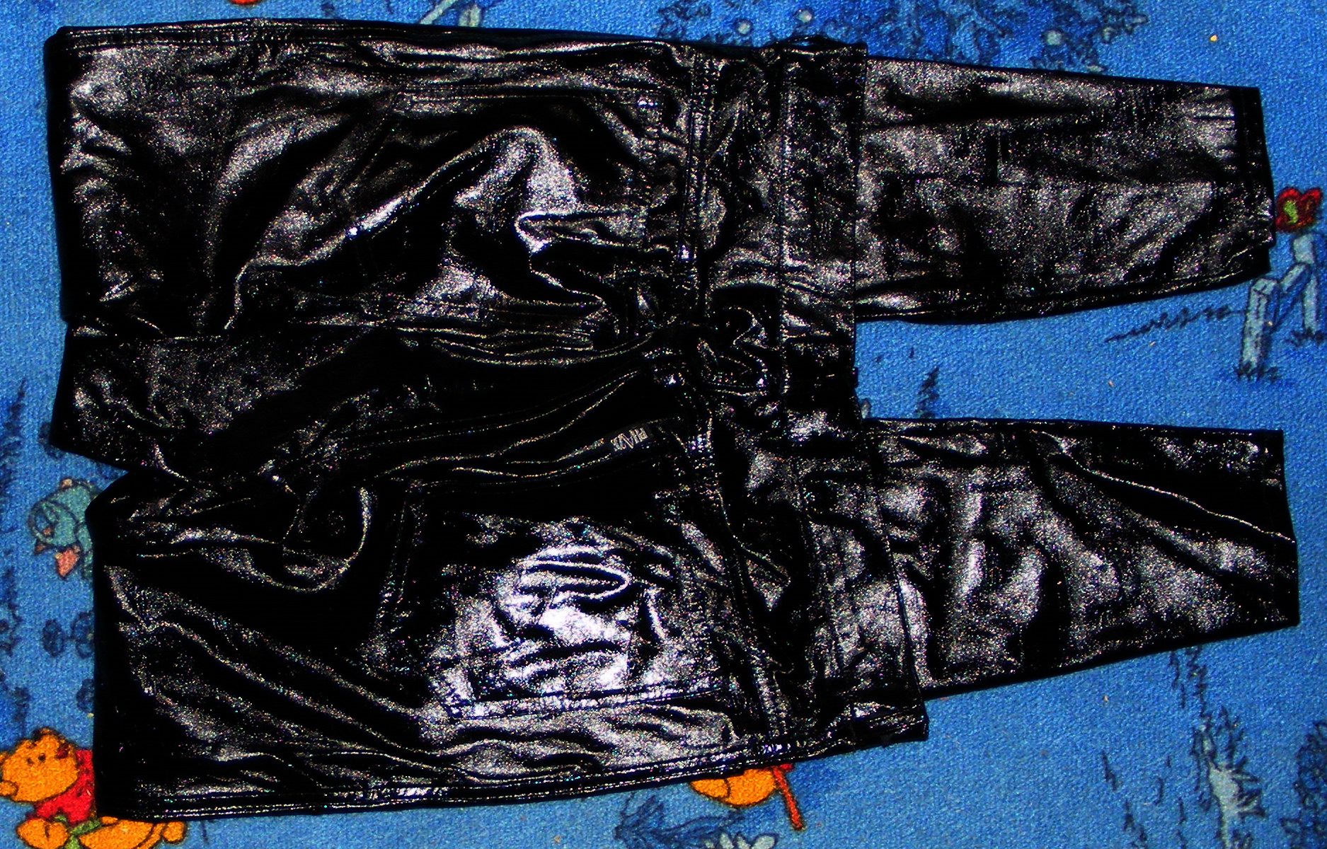 Hier noch mal die billige Glanzhose von Sperrmüll, die ich bisher nur einmal für Fotoaufnahmen getragen hatte.