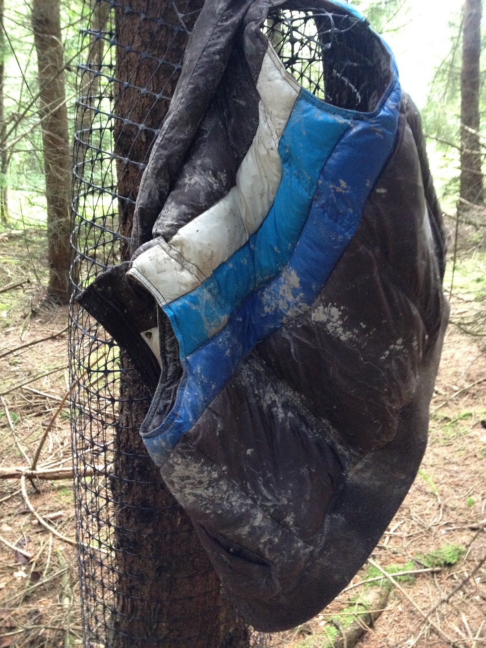 Sieht sehr schön aus, das Ding. Ein Regen und das isr wieder ab. Die Weste ist vom Flohmarkt, ich glaube hat 5 oder 8€ gekostet.