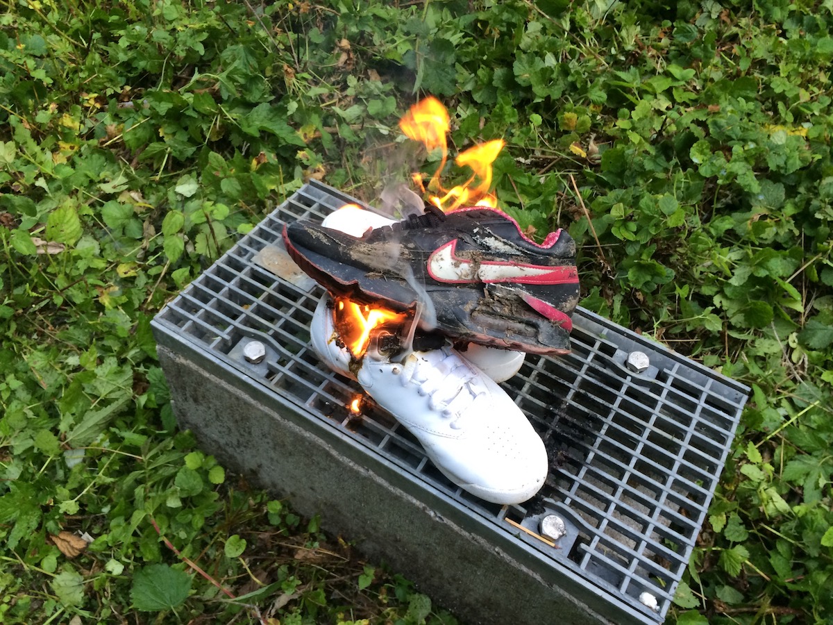 Solch ein (gut vorbereitet) brennender Schuh ist eine hohe Form von Kunst, jeweils einmalig, unwiederholbar und vor Allem unumkehrbar! (Sabber)