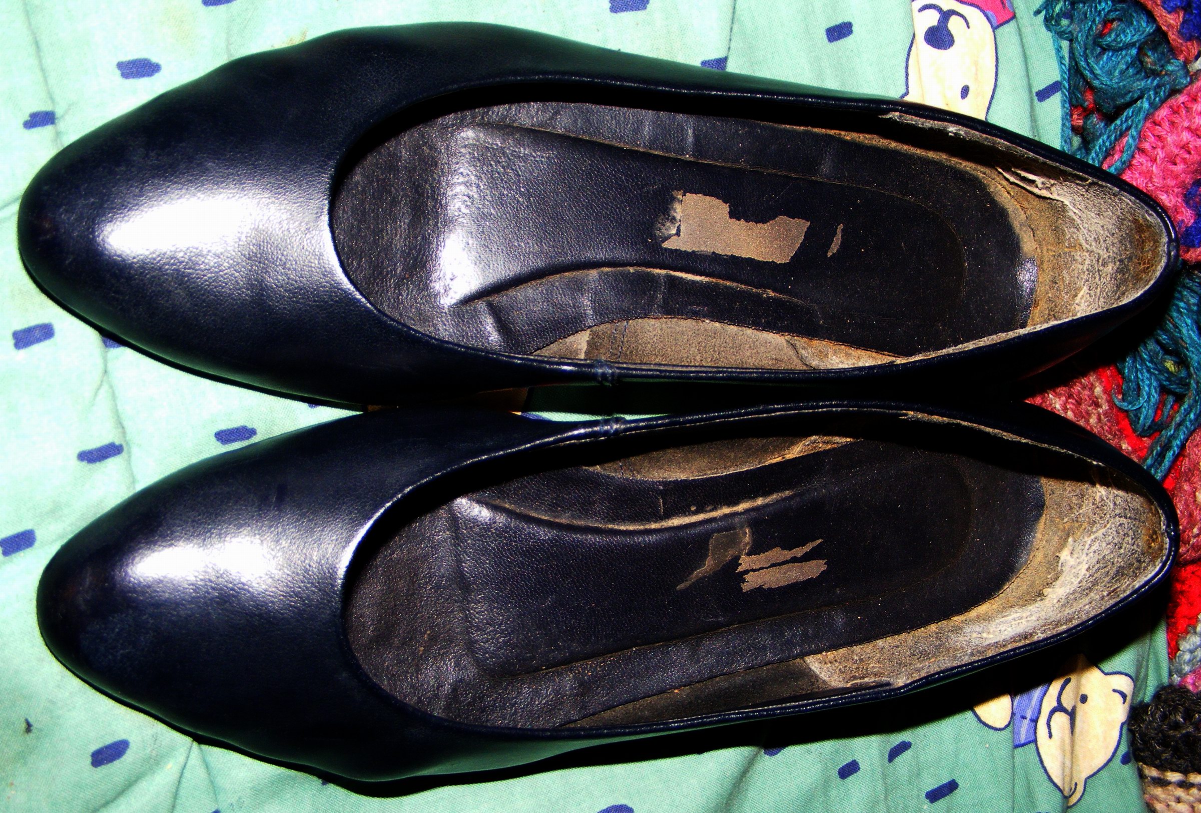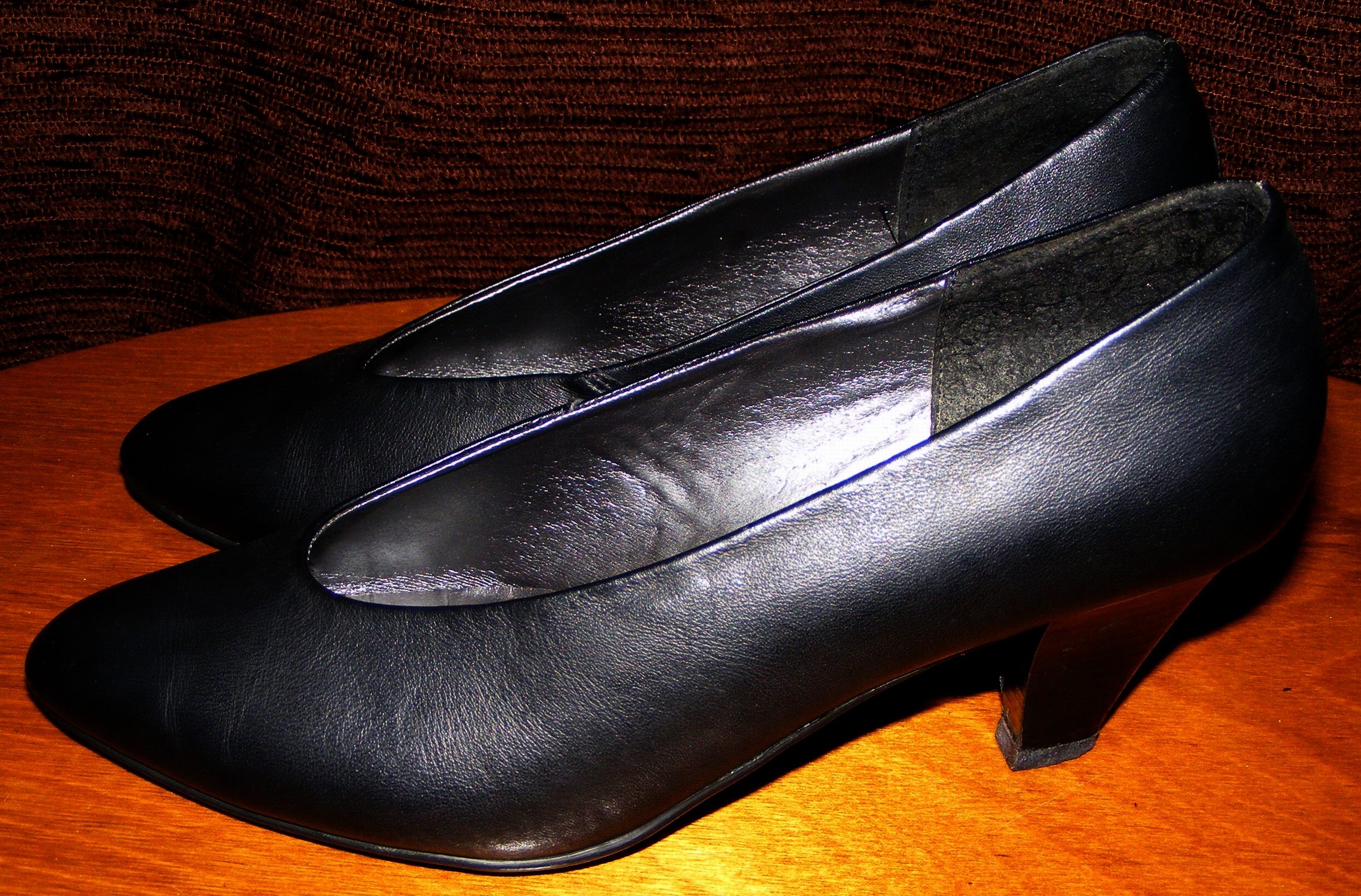 Dieses Paar hier, zwar von einer seinerzeit "echten" Stewardess nur kurz "Eingetragen" und vielleicht noch gar nicht "in der Luft" gewesen (evtl. möglich, aber weiß sie leider nicht mehr genau zu Sagen), gab´s sogar im Karton. Nach Aussage der Vorbesitzerin in den Neunzigern bei Reno gekauft und (wegen eines Umzuges sicher nachvollziehbar) im Oktober 2001 letztmalig getragen und dann eingelagert. Auf Grund ihres guten Zustandes kamen sie erstmal nicht ins Feuer, sondern zu mir - vielleicht hätte meine NT (mit Gr. 39) Verwendung dafür.