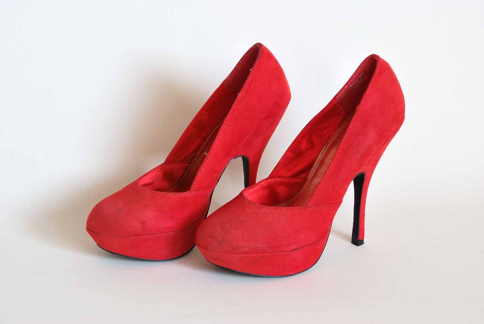 Rote Highheels im Karnevalsmüll.