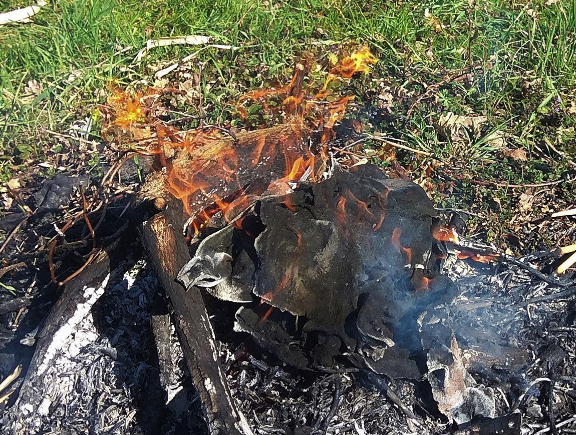 2 versiffte alte Decken auf der Feuerstelle im Garten verbrannt. Die wollten erst nicht so richtig kokeln, aber mit Hilfe