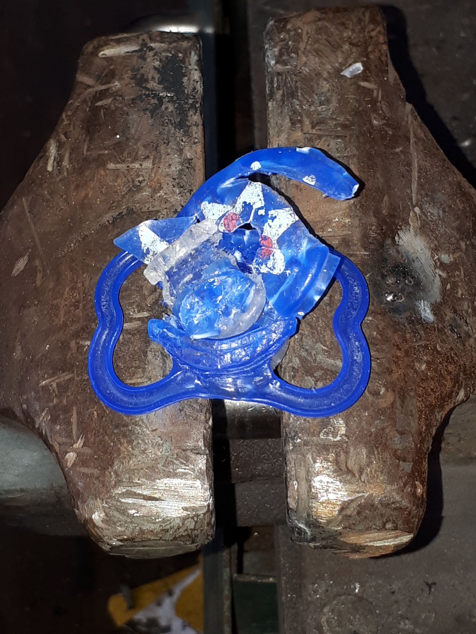 Hab hier auch mal ein paar Bilder von einem Blöden Silikonschnuller im Schraubstock
