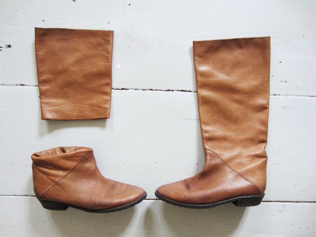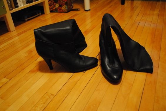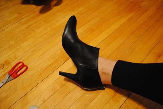 Das mal mit einem Paar Gummireitstiefel, die angezogen den Schaft vorne runter bis zu den Zehen aufgeschnitten werden...