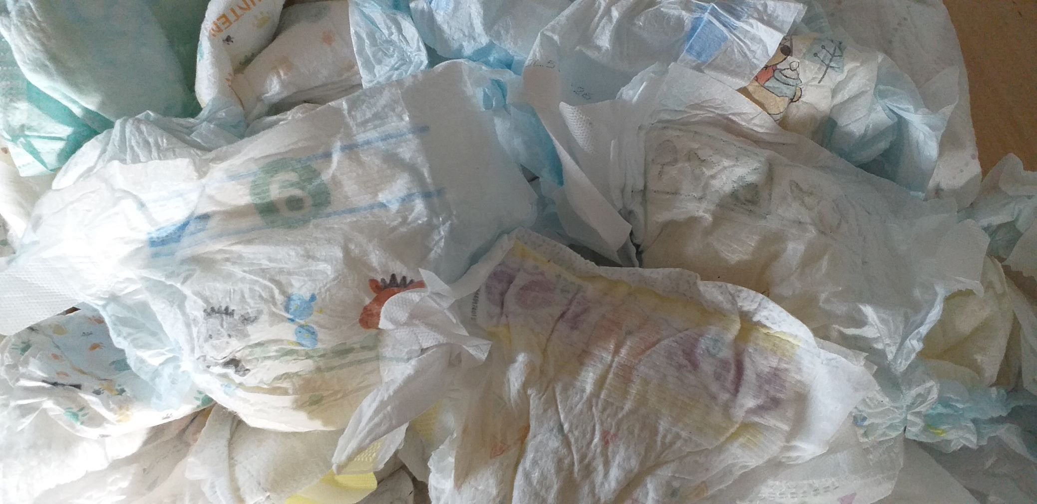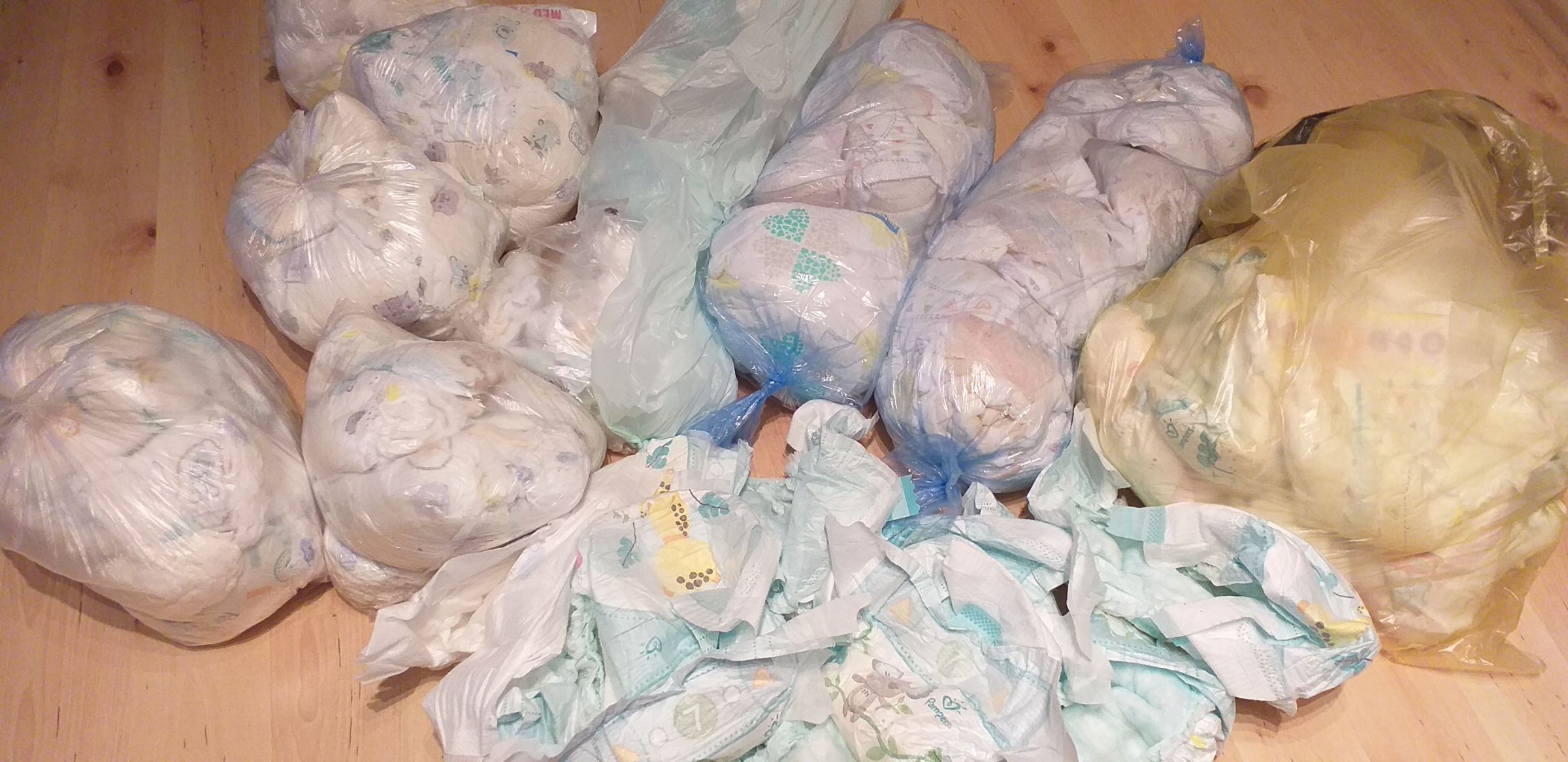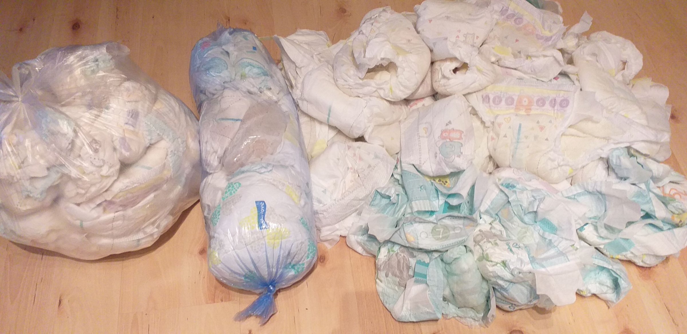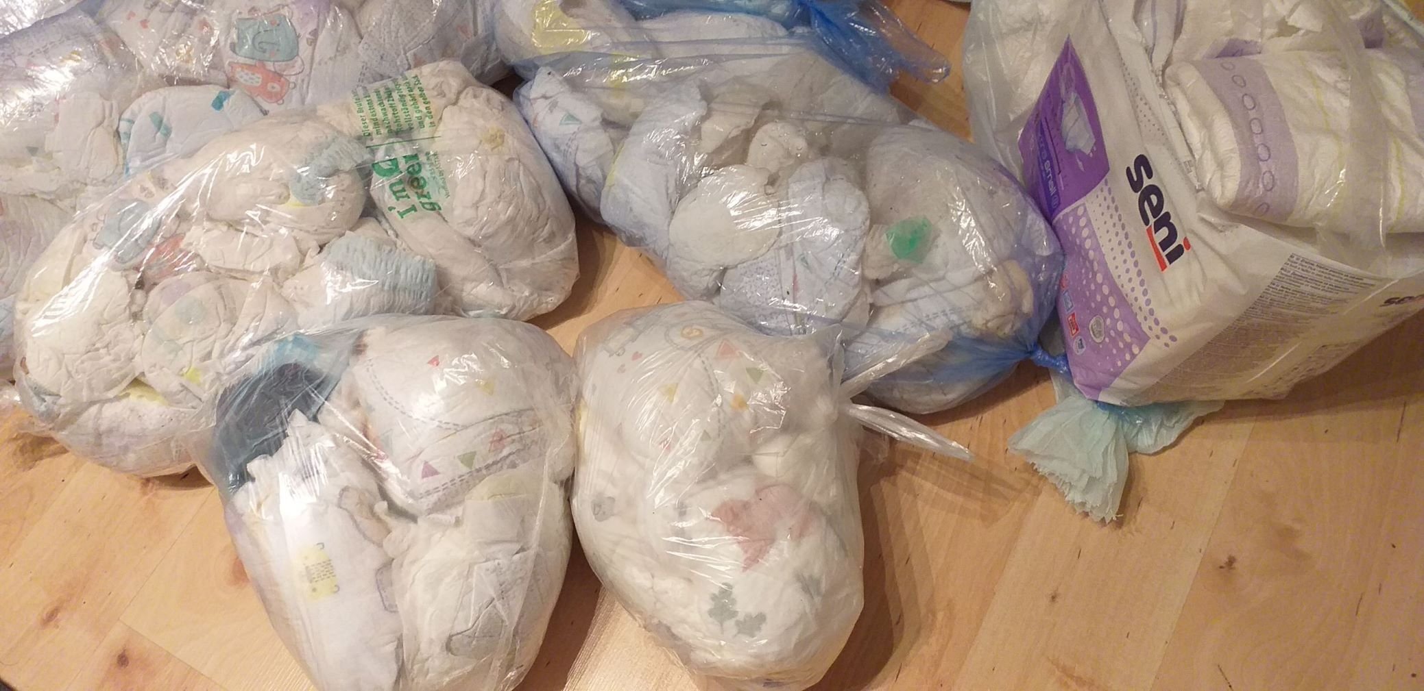 Die unbrauchbaren (meistens vollgekackt oder diese Pants) also wieder in die Müllbeutel und zugeschnürt, werden dann beim nächsten Besuch einfach gegen frische Windeln ausgetauscht.