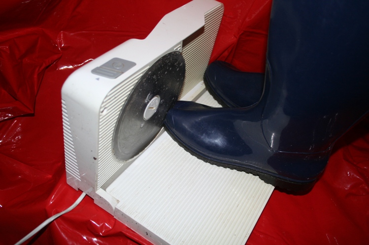 Wenn ich schon nicht über eine blaue Brotschneidemaschine verfügte, so doch über blaue Gummistiefel.