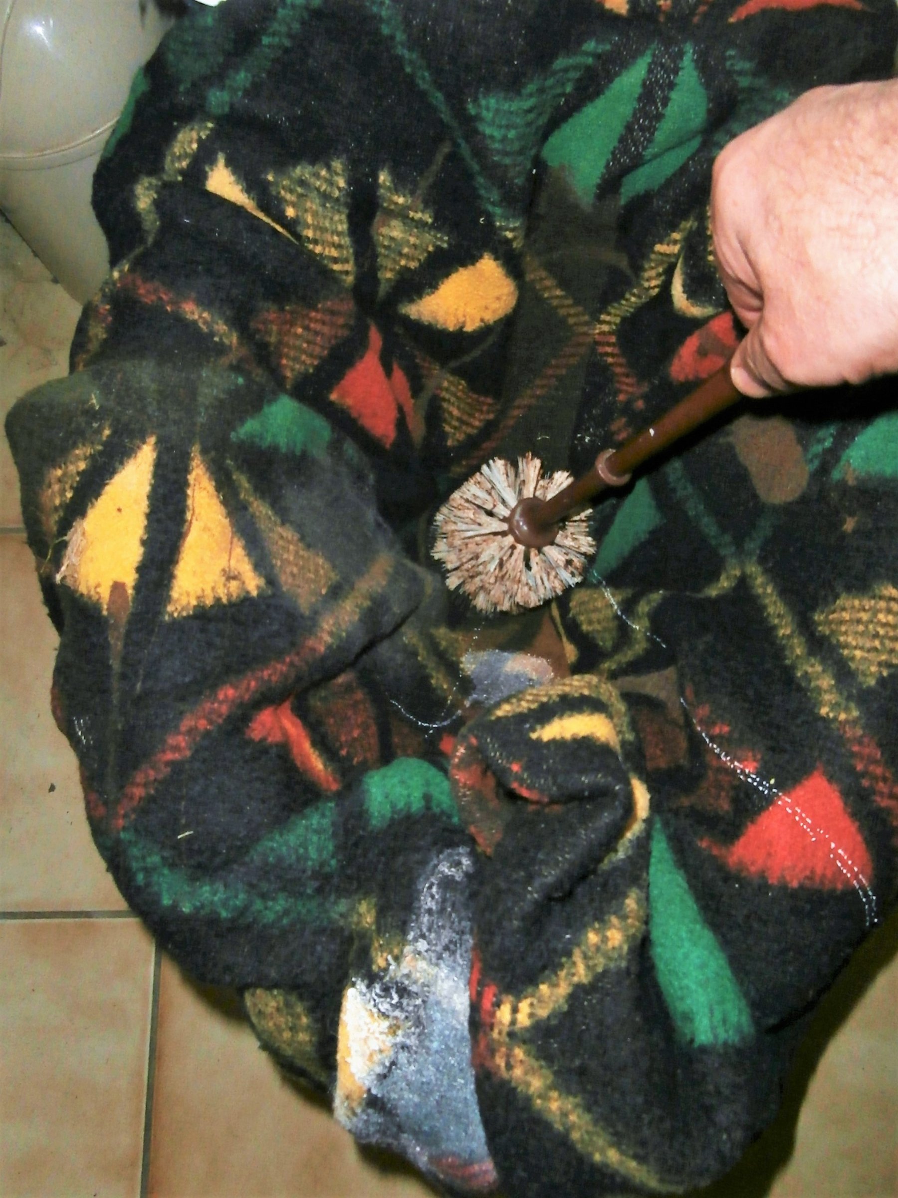 nasser Pipi Wolldecke, da es ja reichlich geregnet hat. Mal überlegen, was ich damit mache. Eingesaut ist die ja jetzt reichlich