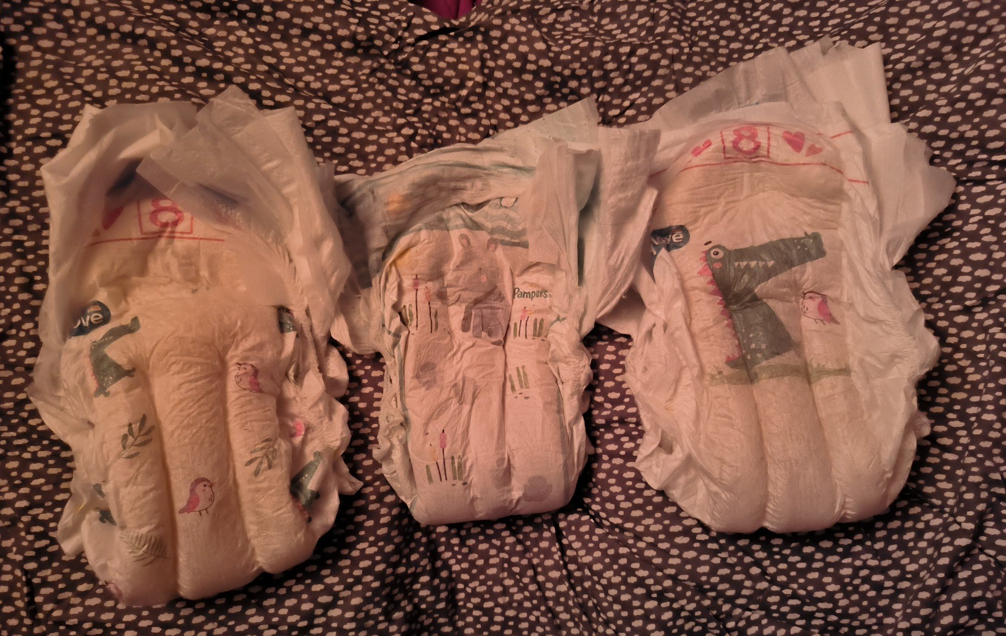Sind alles 3 die Größe 8, zweimal die Babylove 8 und einmal Pampers Babydry 8.