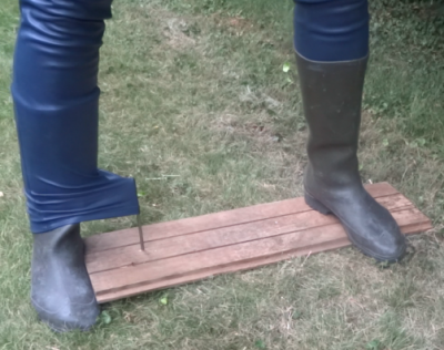 Meine Leggings haben noch keine Brombeersträucher berührt – und meine Marker haben schon ewig keinen Stoff mehr berührt. Der Nagel, der die Gummistiefel ruiniert hat, langweilt sich auch langsam.