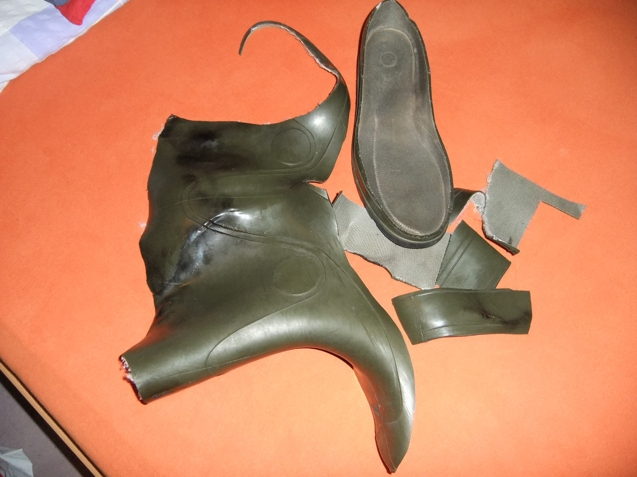 Hallo, ich kann wieder mal einen Auftrag annehmen: Der kann so ausgeführt werden: Bearbeitung von Gummistiefeln, Reitstiefel, Lackstiefeln, Overkneestiefeln, Stretchstiefeln, PVC- Bällen, Wasserbällen, Schwimmringe aus PVC. Es stehen zur Verfügung: Bunsenbrenner, Grill, Heißluftföhn und sonstige Werkzeuge wie Zangen, Scheren, Messer, usw.