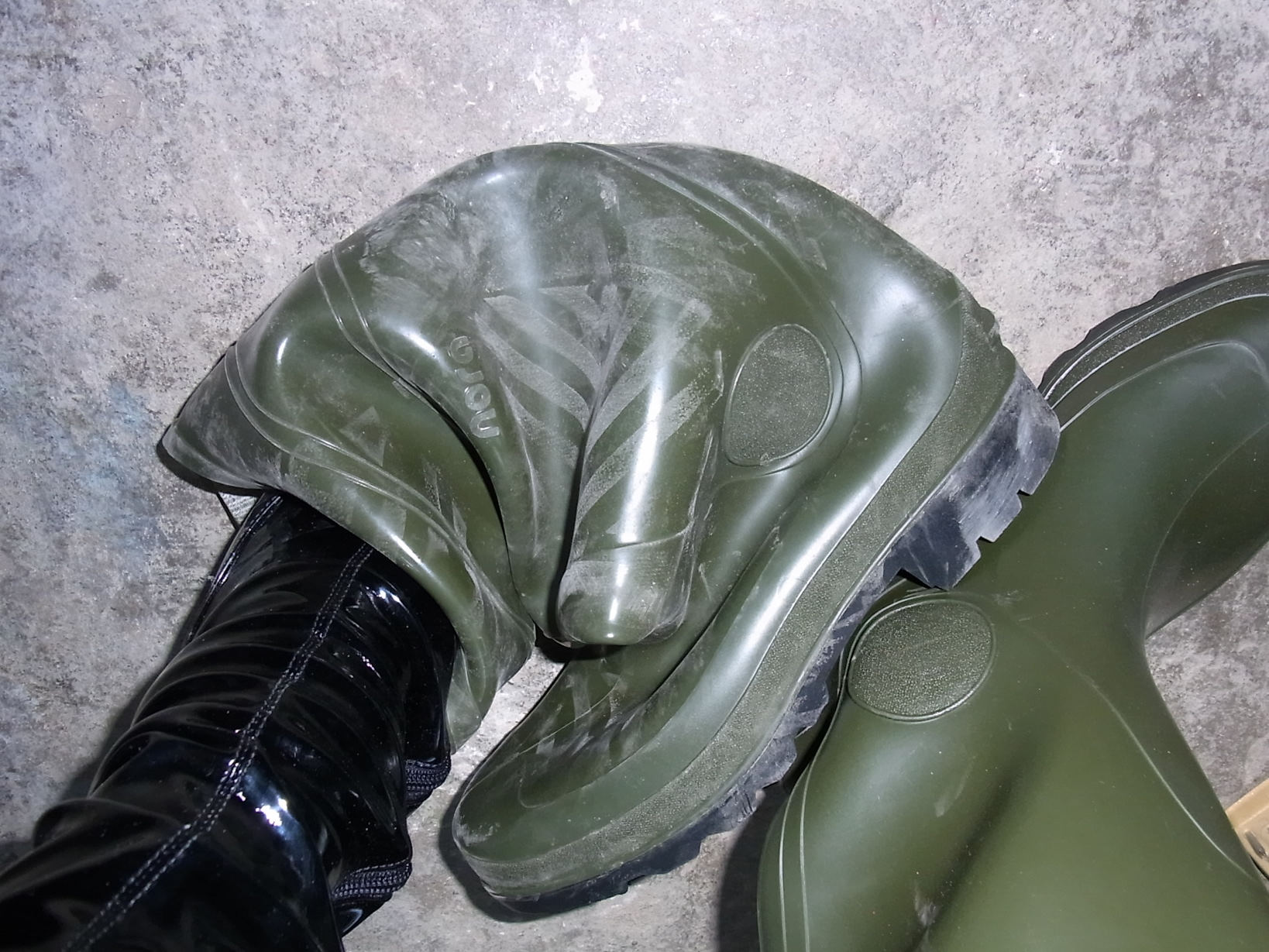 @dunlop / Hallo DUNLOP, heute kam das Paket mit den Stiefeln an. Beim auspacken war ich jedoch sehr erstaunt: Die Stiefel sind nagelneu! Hmm eigentlich sollten neue Stiefel ja nicht vernichtet werden, sondern erst einmal getragen werden, damit sie auch ihren Zweck erfüllen können. Ich meine deshalb, sie sollten erstmal eine Zeit lang getragen werden damit sie leiden müssen. Dann können sie- wenn sie fertig getragen sind auch vernichtet werden. Es ist doch eher langweilig die neuen Stiefel einfach so kaputt zu machen. Sie sollten erst ihren Dienst tun. Ich schlage dir folgendes vor: Die Stiefel werden noch eine längere Zeit getragen damit sie einige Gebrauchsspuren bekommen. Alternativ kann ich dir die Vernichtung meiner eigenen Nora Como anbieten, die sind gut gebraucht. Natürlich auch mit Bildern. Dann schlage ich vor, die neuen von dir erstmal etwas langsam zu quälen (mit den Absätzen meiner HighHeels zum Beispiel) oder andere Gemeinheiten ohne endgültige Vernichtung (Ehrenplatz in der Sammlung). Weiterhin würde ich bei Verschonung deiner (noch) neuen Noras anbieten: Alternative Vernichtung meiner getragenen Overkneegummistiefel und meiner eigenen Reitgummistiefel aus PVC. Ausserdem hätte ich anzubieten ein Paar Aigle von Ralf zur Vernichtung (aber nur bei Tausch gegen ein anderes Paar in Gr.42 oder Gr.43). Wie du dich entscheidest das liegt an dir. Ich werde jedoch auch, wenn du es so entscheidest- die neuen Noras vernichten. Bitte überlege und gebe Bescheid. Es ist ja noch etwas Zeit. Wären die Stiefel schon etwas fertig, dann wäre das Problem der Vernichtung kein Thema für mich; ich finde es halt langweilig einfach ein Paar neue Stiefel ohne Gebrauchsspuren zu vernichten. Anbei die Bilder meiner Stiefel: