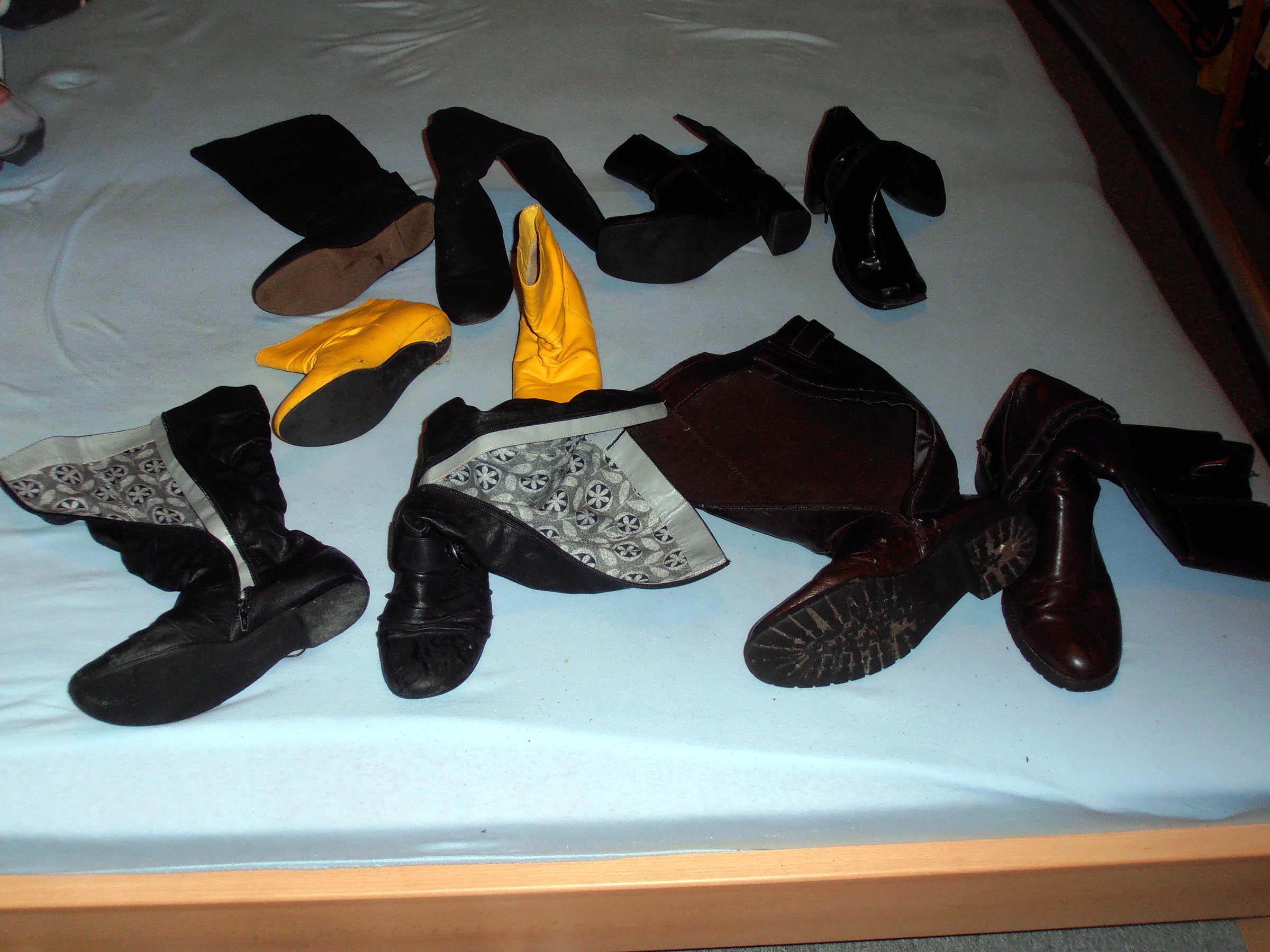 haben auch immer wieder getragene Pumps, Stiefel und auch Gummistiefel.....