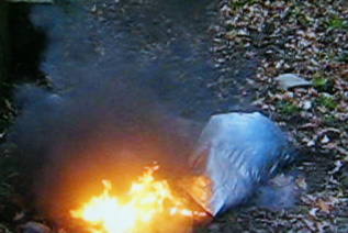 Tja-der liebe Rauch. Da muss man schon gewaltig aufpassen, nicht vom Förster oder Wanderern erwischt zu werden. Da ist es gut, wenn ich Nylon oder dünne Lackmäntel verbrennen muss. Die rauchen bei weitem nicht so gewaltig wie Plastiksachen. (Siehe Bild)