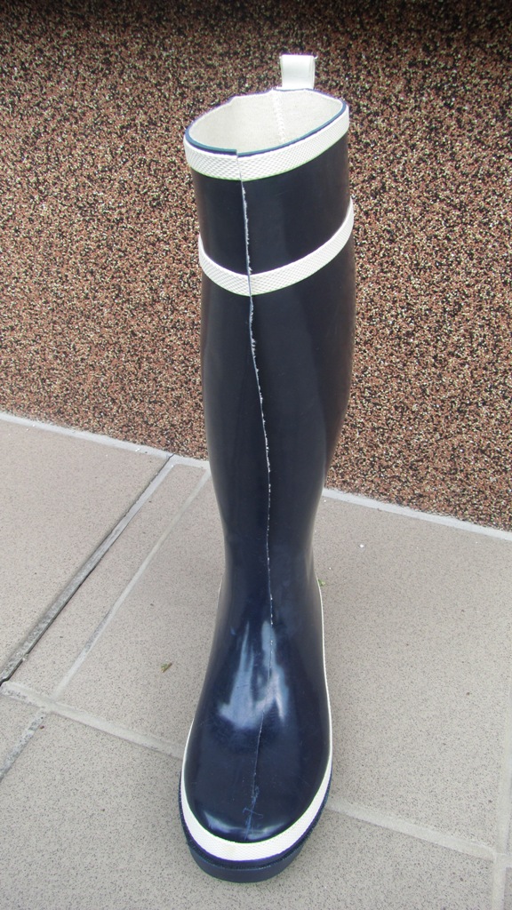 Schnitt für Schnitt merkte sie und es war als ob ihr eigenes Fleisch geschnitten wurde. Sie schaute runter auf ihr nacktes Bein und sah wie der Schaft des schönen blauen Gummistiefels langsam vorne der Länge nach aufgeschnitten wurde. Sie sagte noch oh nein meine schönen neuen Gummistiefel.