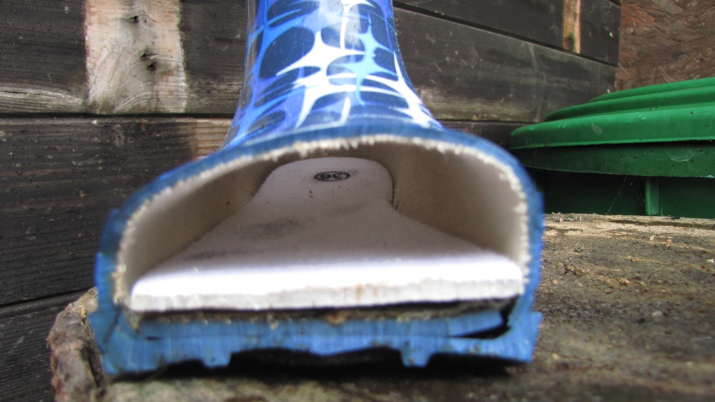 Reparieren kommt für diesen zugegebenermassen netten Gummistiefel nicht in Frage. Meine Freundin wird ihn auch nicht mehr tragen wollen, da sie schlechte Erinnerungen daran hat, folglich werde ich mich um die Stiefel kümmern müssen