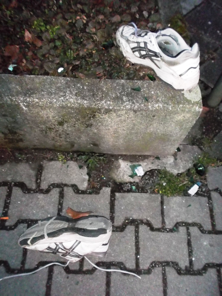 Die großen asics passten wohl nicht in den Abfallkorb?!