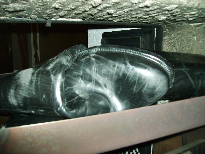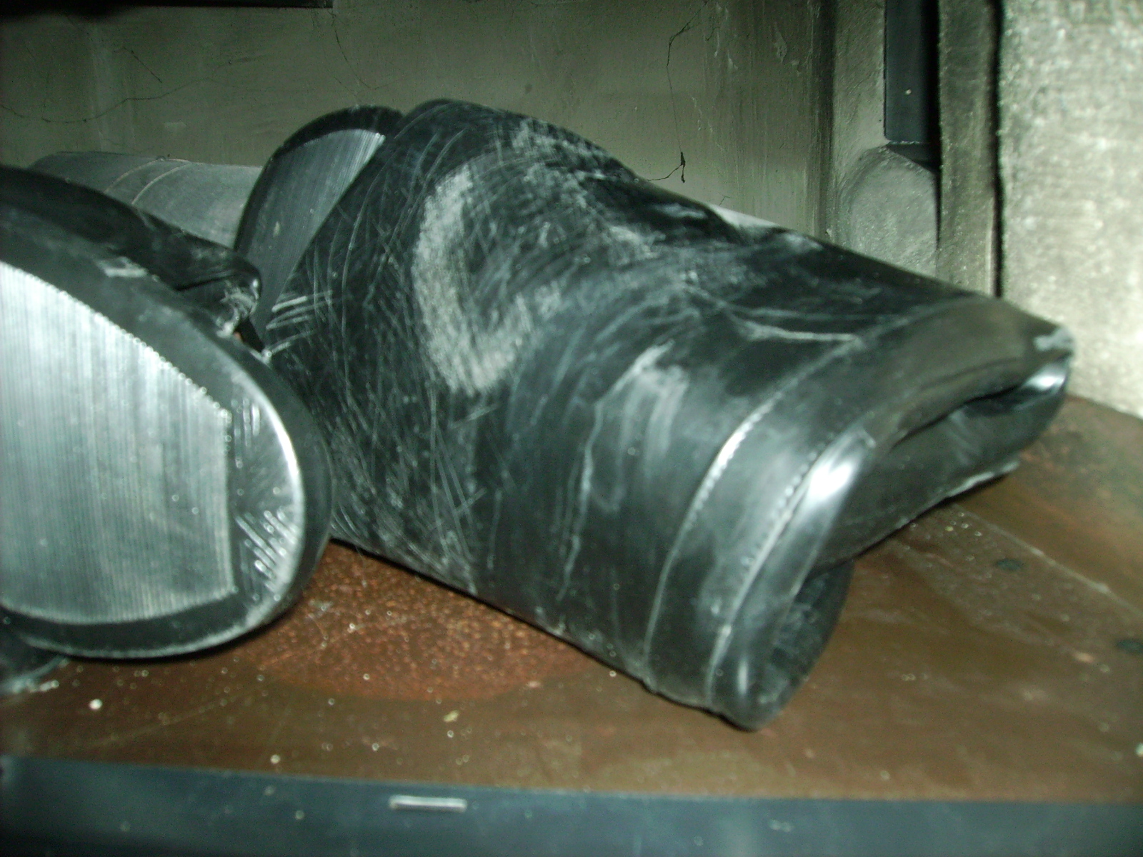Aber die Hitze im Kachelofen hat die Stiefel so weich gemacht, dass das Anfassen kaum mehr möglich war, also kurz vor dem Aufplatzen des Materials. Also in der Öffentlichkeit nicht mehr zu tragen, aber mir wird schon noch was einfallen evt.