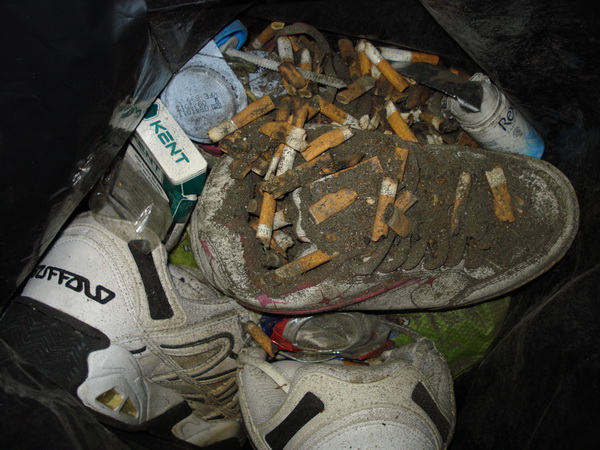 so siehts aus wenn eine ganze menge schuhe entsorgt werden.