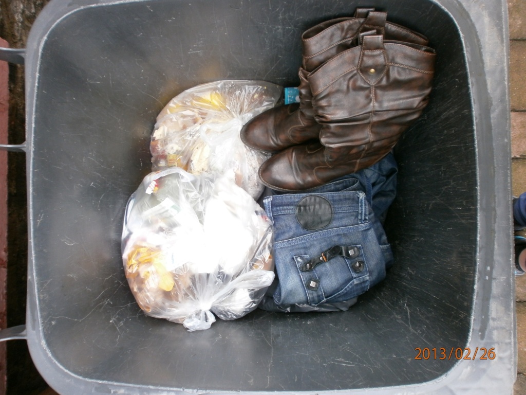 Beinahe schon unnatürliche Bilder, aber authentisch. Auch so können ausrangierte Stiefel und Jeans im Müll "landen". Wie macht ihr das denn