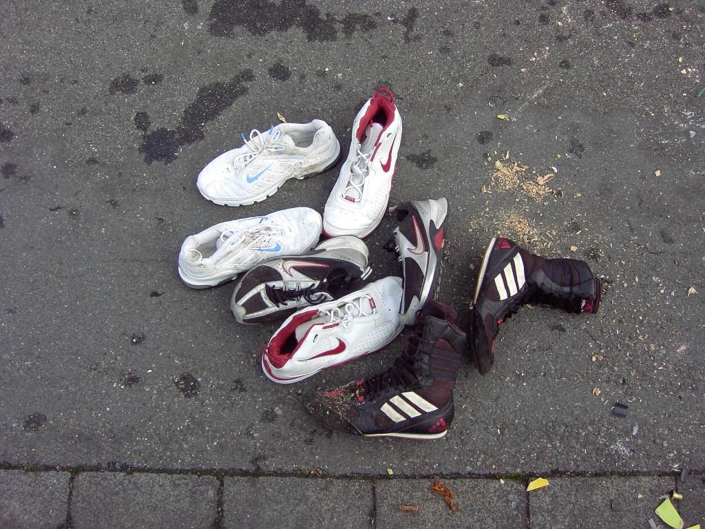 - Nochmal lagen die gepressten Sportschuhe beisammen.