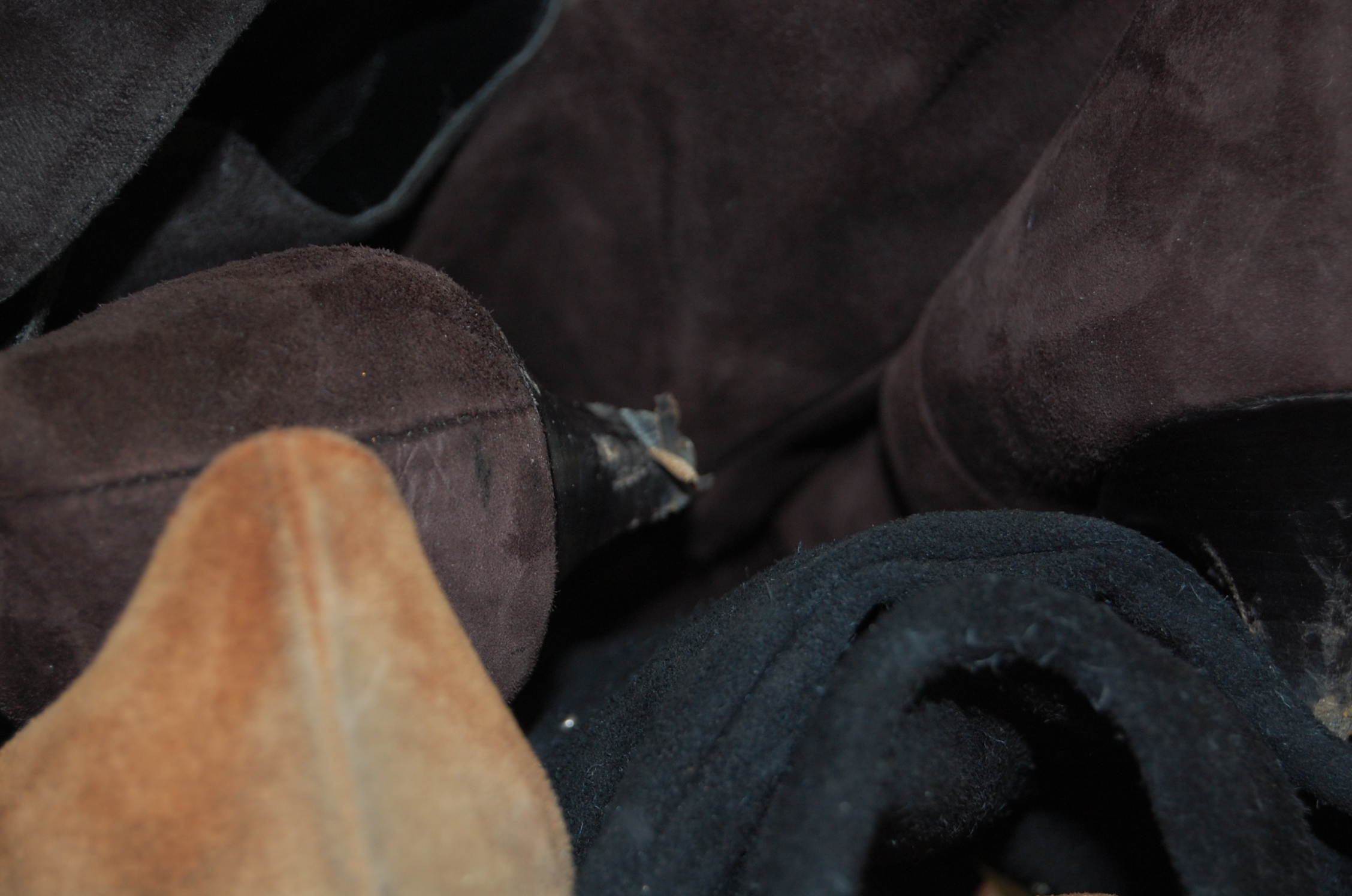 Fange einmal damit an, dich selbst „ins Vertrauen zu ziehen“, wenn du Entscheidungen zu fällen hast; - und sei das leidige Ausrangieren! Wenn du dann alles wohl durchdacht hast und du mit dir „im Reinen“ bist, dann können wir alle deine Entscheidung genießen: Restaurieren und aufs Neue diese herrlichen spitzen Schuhe und Stiefel an deinen zarten Füßen bewundern, oder deren geiles Ende sensationslüstern aus vollen Zügen genießen.