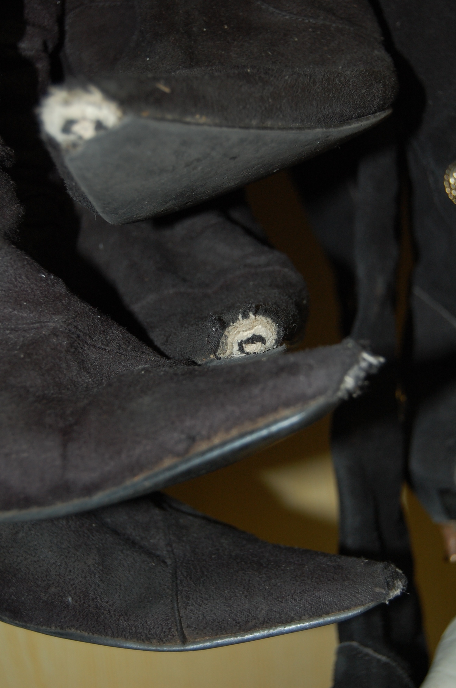 Die nächste Generation kommt bestimmt! Solche qualitativ hochwertigen Vintage-Modelle wie die Overknees solltest du wirklich behalten. Wie du siehst, bin ich doch so fair, genau zu differenzieren zwischen geilem Müll und geilen Vintage-Schuhen. Verlatschte Schuhe und Stiefel dürfen ruhig „peinlich“ sein, denn das macht doch gerade der Reiz für uns Fetis aus und die Orangenen Engel werden Nachsicht üben, wenn sie total abgestöckelte, verkäste und verschrammte Girly-Stiefel ins Pressmüllauto laden sollen.