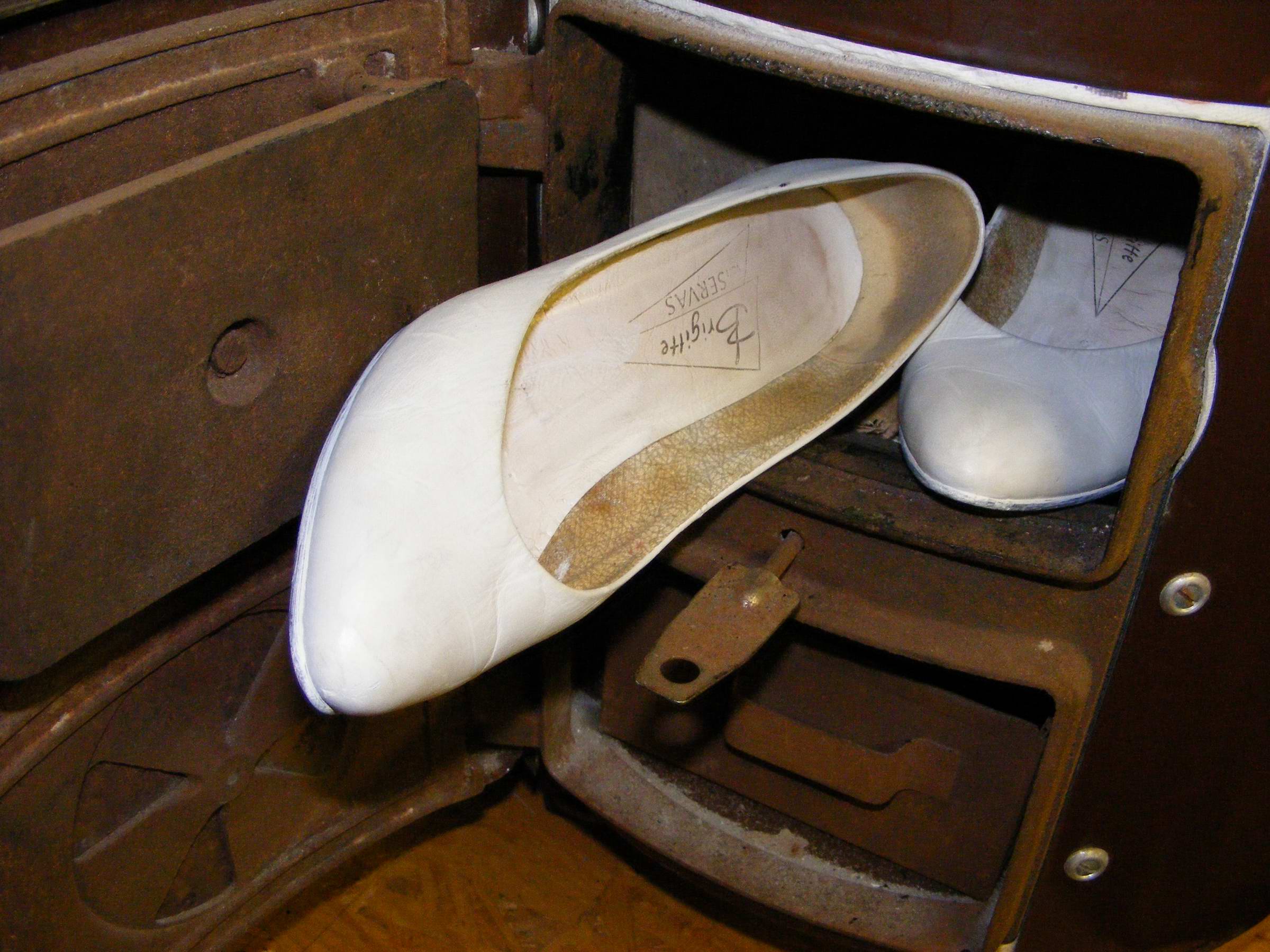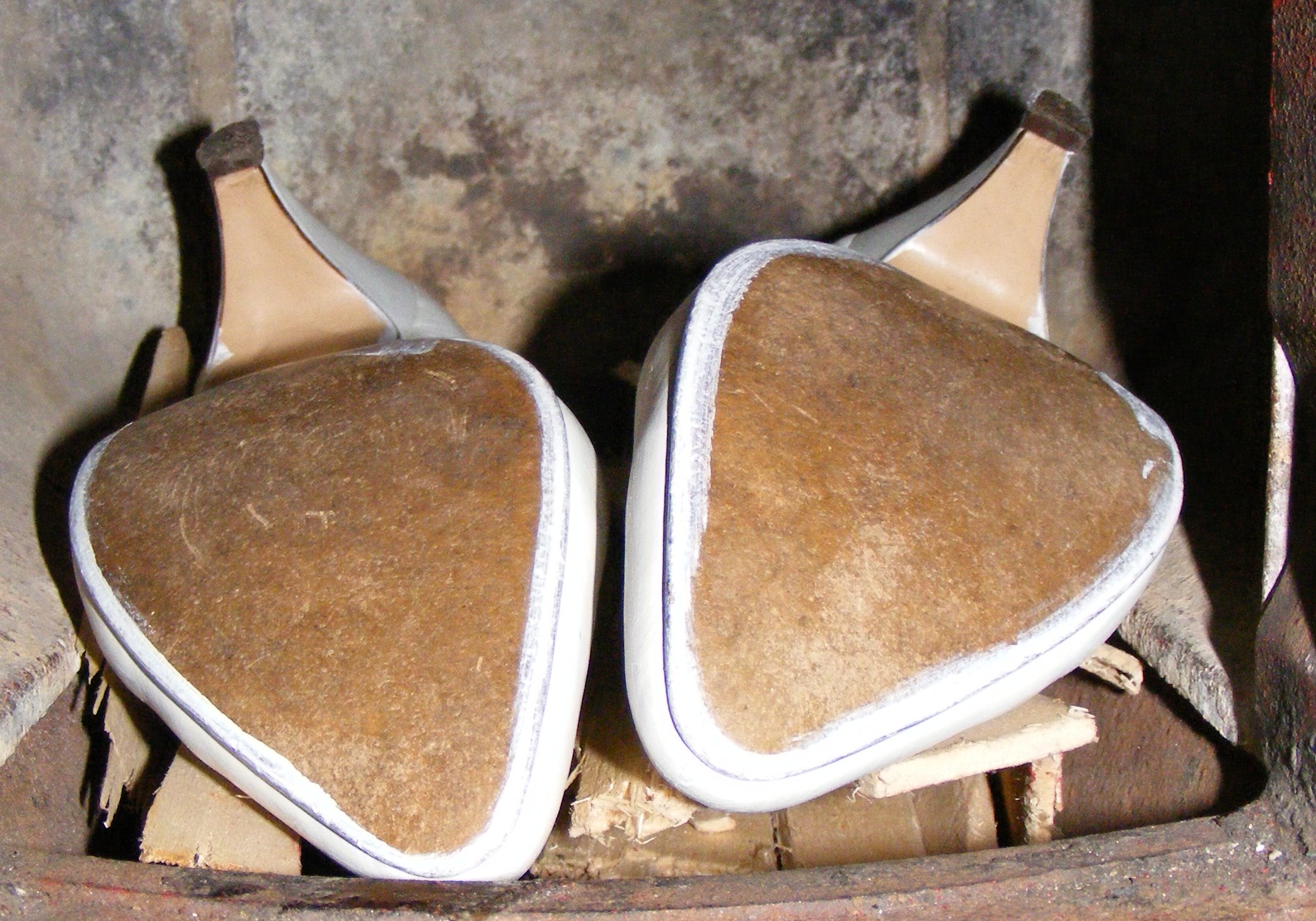 Eigentlich wirklich schade um die weissen, die sehen wirklich hochwertig aus, sogar mit Ledersohle, vielleicht waren das mal Brautschuhe? Weisse Pumps sind irgendwie ansonsten ziemlich selten, warum mögen das Frauen nicht?!? Haben die noch eine Gnadenfrist bis zur nächsten Heizsaison oder werden die vorher zur Teilegewinnung geschlachtet?