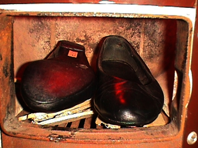 Dann wollen wir uns doch mal vergegenwärtigen, wie es seinerzeit bei meiner Mutter am Badeofen ausgesehen haben könnte, als sie die zu kleinen Stiefel verbrannte. (Alle Bilder nachgestellt.)