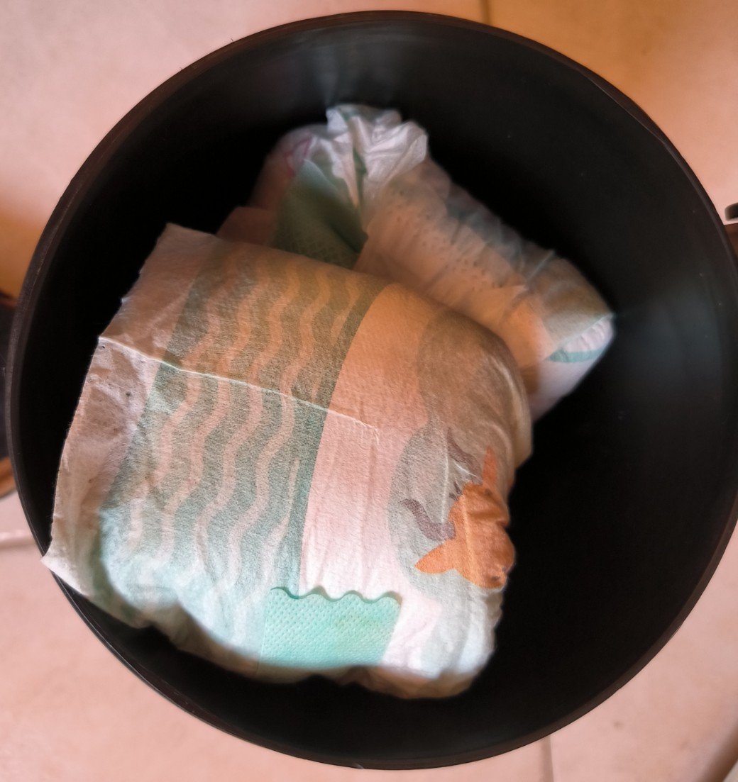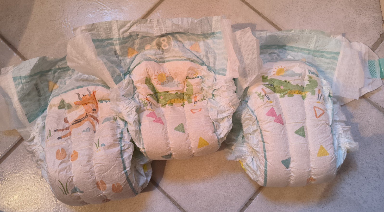 Unsere Tochter hatte bis heute für 3 Nächte in den Ferien ihre Freundin (9) zum übernachten hier. Bei Putzen vom Gästebad gab es gerade dann ne kleine Überraschung in Form von 3 vollkommen von vorne bis hinten nassen und total dicken 8er Pampers, welche wohl von der Freundin stammen. Finde ich aber auch nicht schlimm, besser so als nasse Betten.