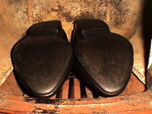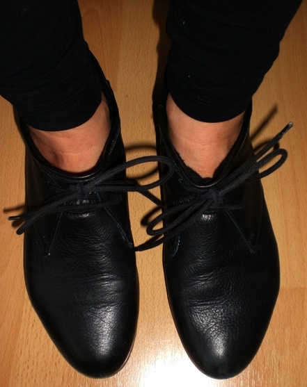 Aber mein größter Favorit sind flache weiche Lederschuhe in Rot oder Schwarz, die ich nach dem erfolgreichen Entreißen aus den Klauen des Müllmonsters zu "Wandertagen" meist noch richtig endfertig "ablatsche". Meine breiten Füße geben ihnen wirklich "den Rest", es ist deutlich zu sehen!