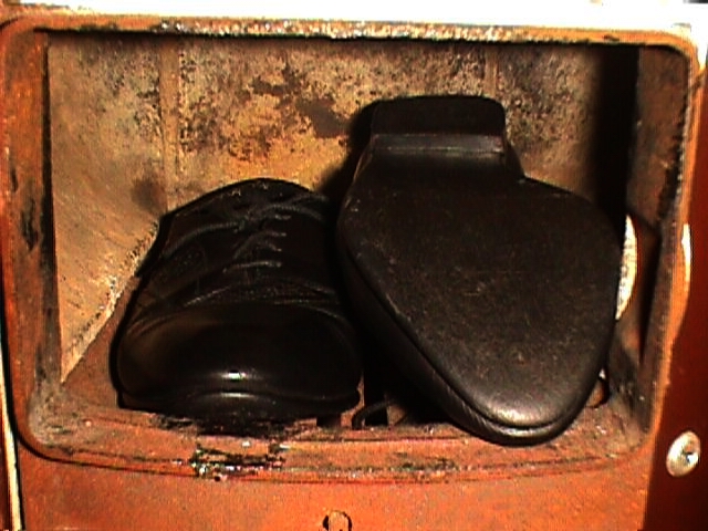 Perfekt für Badeofen und Heizung sind natürlich etwas höhere Schnürschuhe. Die brennen wie der Teufel!