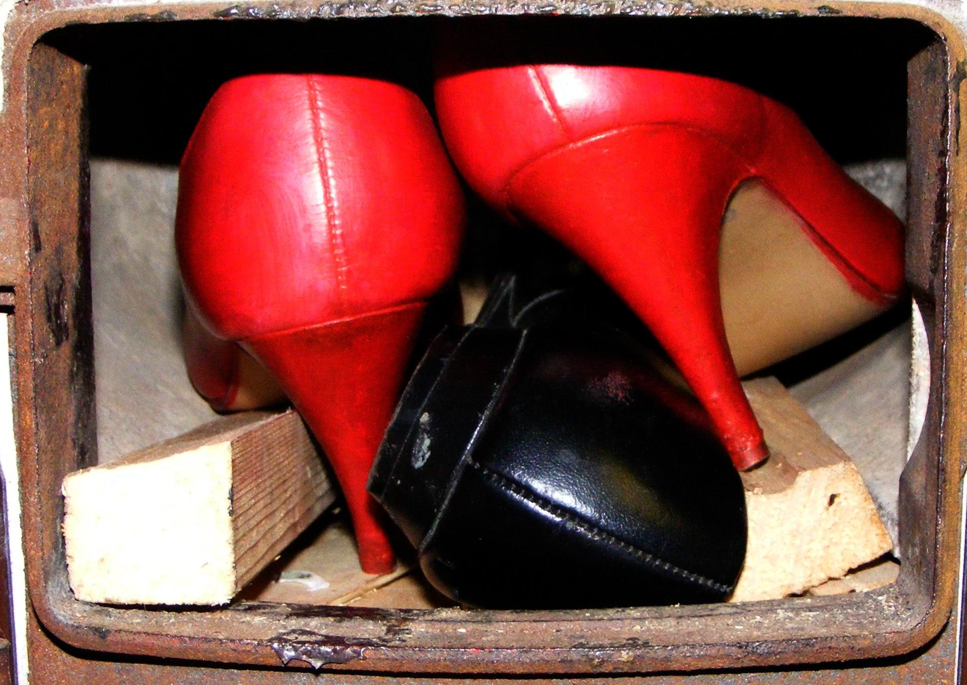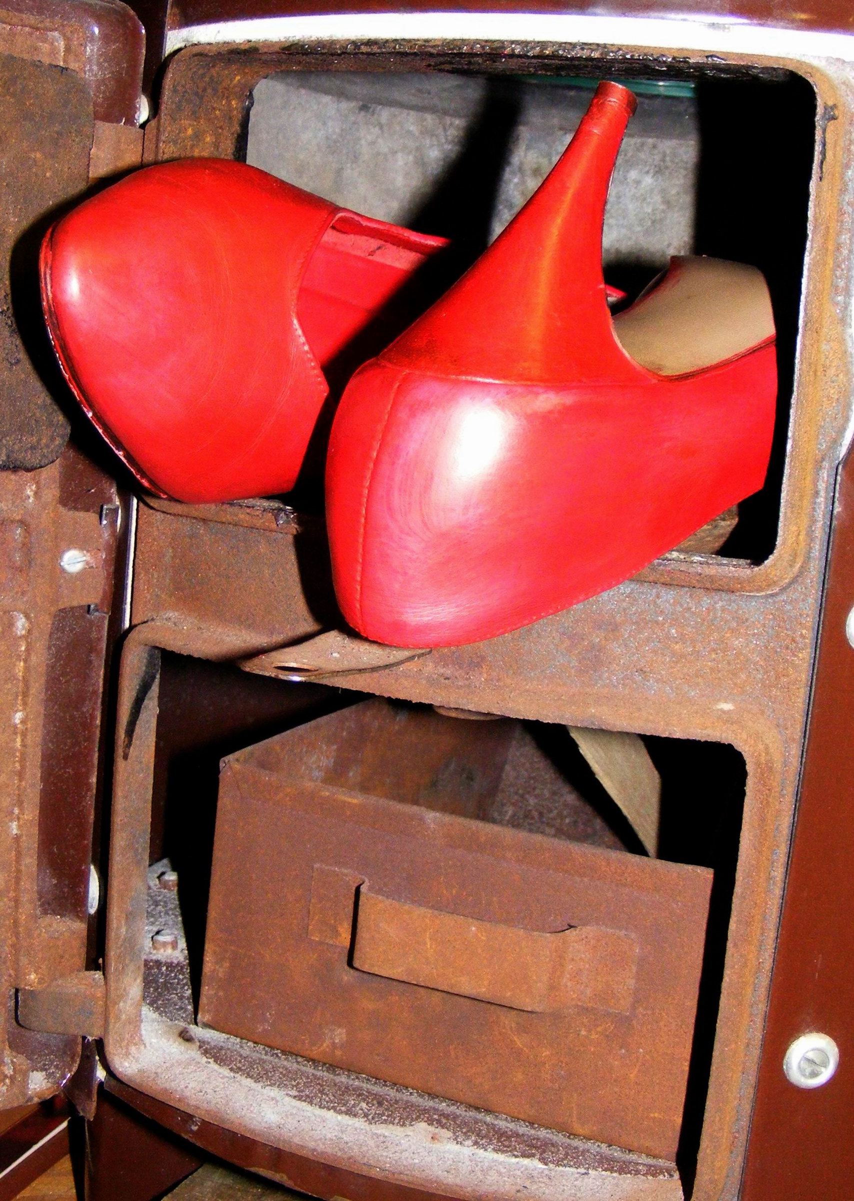 Nach solchen roten Schnürschuhen in passender Größe suche ich schon lange wieder. Die letzten davon habe ich vor vielen Jahren, noch im Badeofen, verbrannt!