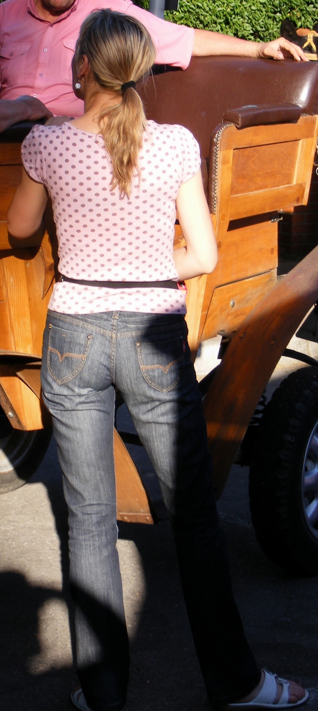 Ich würde es aber zuerst mit einem spitzen Pumps probieren, die Latschen kannst du dann, wenn´s ausgeleiert ist ... :)