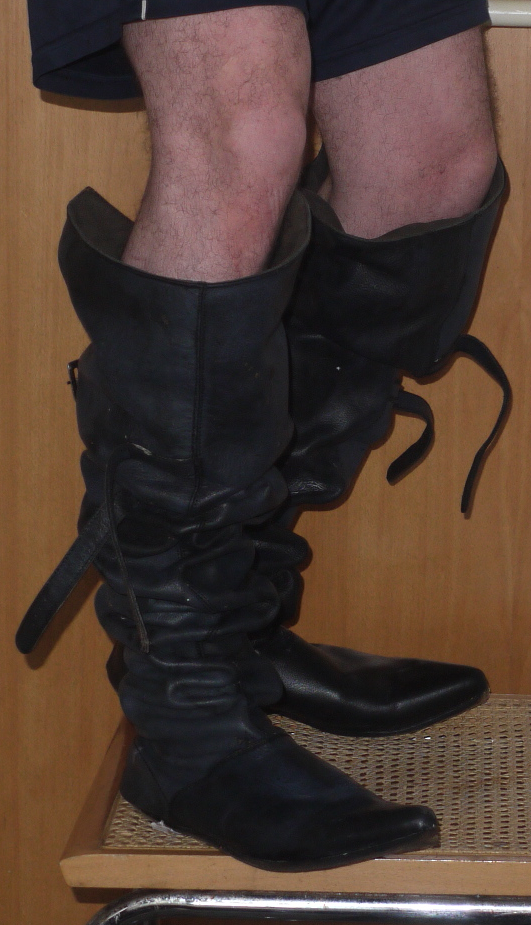 Schwer hängt das noch feuchte Leder und zieht die Schäfte herunter..