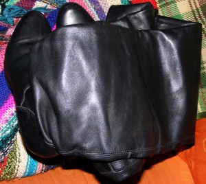 Ich habe sie mit Bienenwachskreme feuchtigkeitsabweisend gemacht und dann sogleich einem umfangreichen "Testlauf", erst an meinem Mann, dann an mir selbst, unterzogen, und hier nun mein Ergebnis: In beiden Fällen "Befriedigend!"